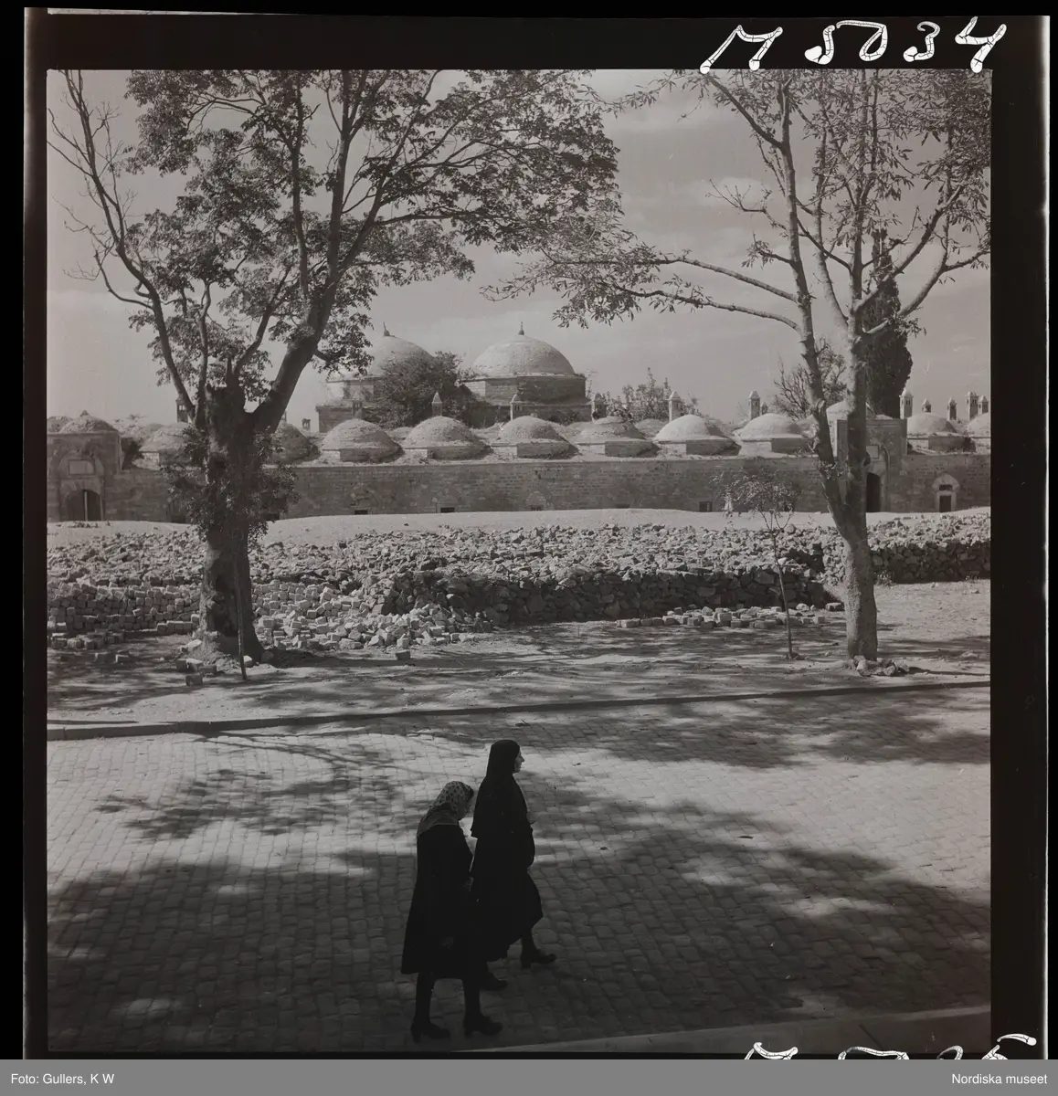 1717/L Istanbul allmänt. Två kvinnor passerar framför en mur i ruiner.