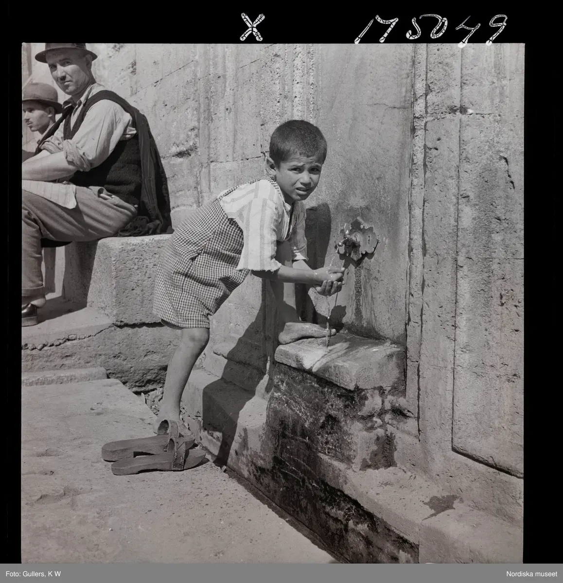 1717/L Istanbul allmänt. En pojke tvättar sig vid en springbrunn/ fontän.