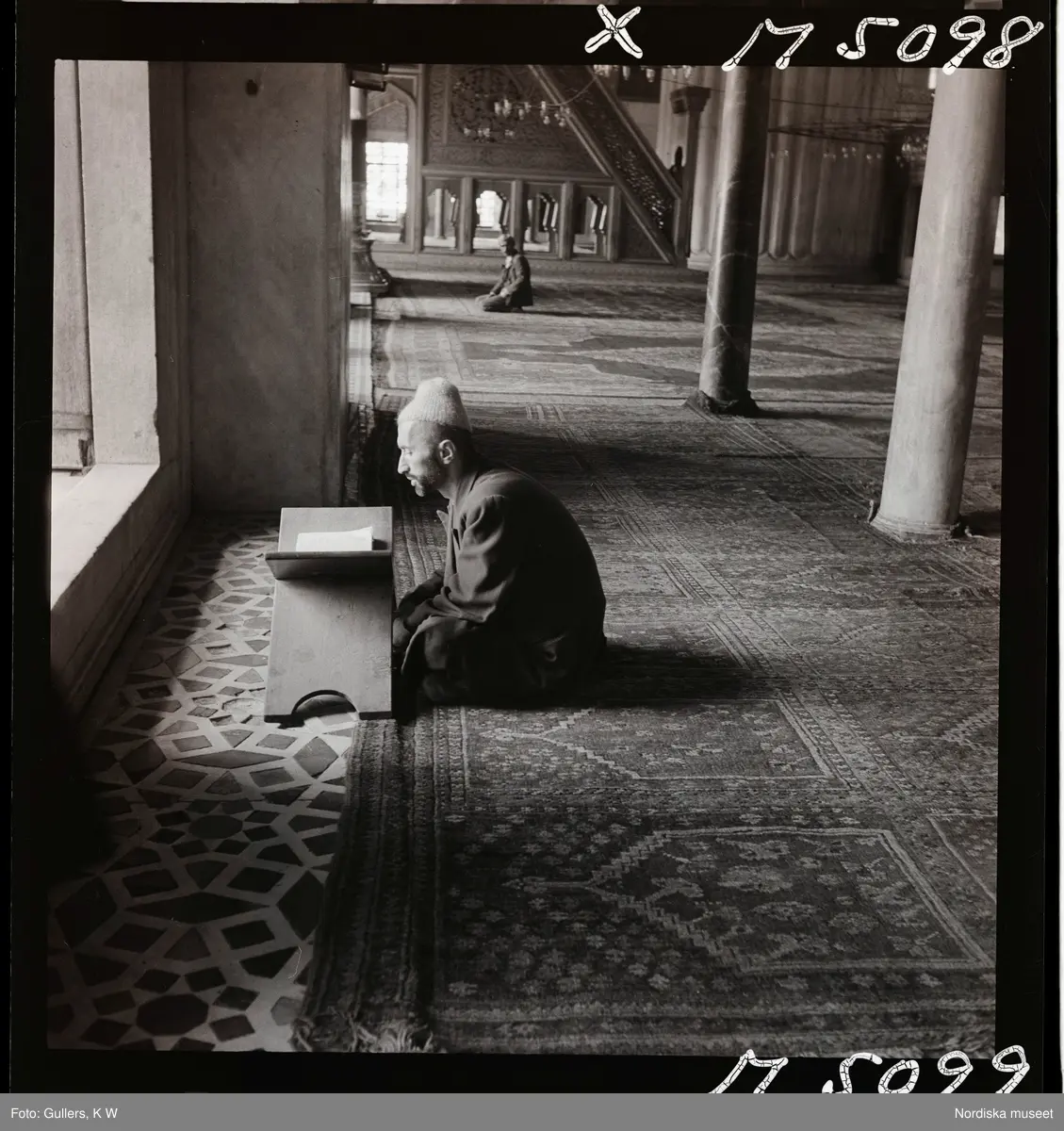 1717/L Istanbul allmänt. En man sitter i en moské och läser koranen.