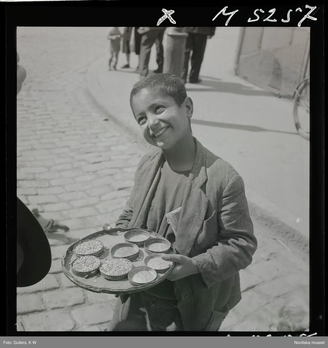 1717/L Istanbul allmänt. Gatuförsäljare. En pojke säljer frön.