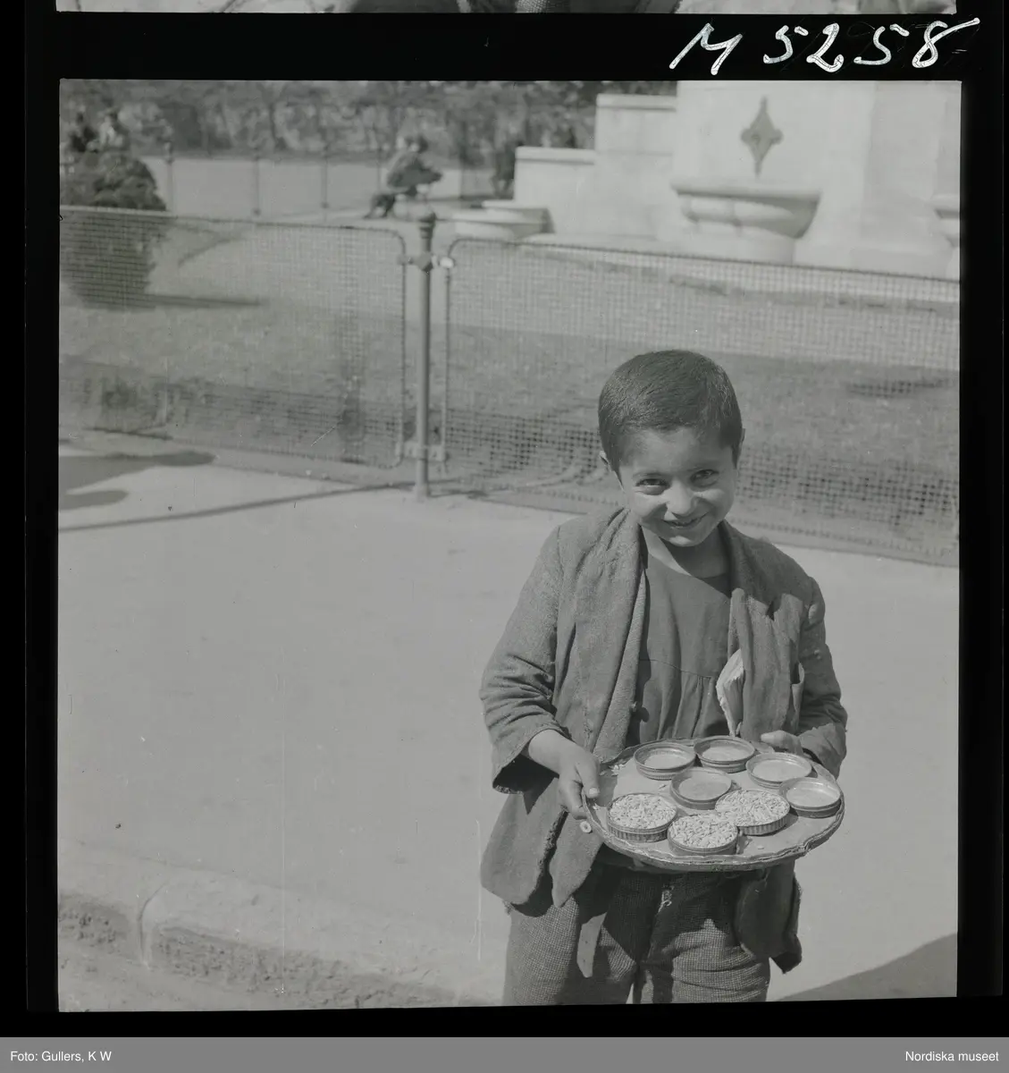 1717/L Istanbul allmänt. Gatuförsäljare. En pojke säljer frön.