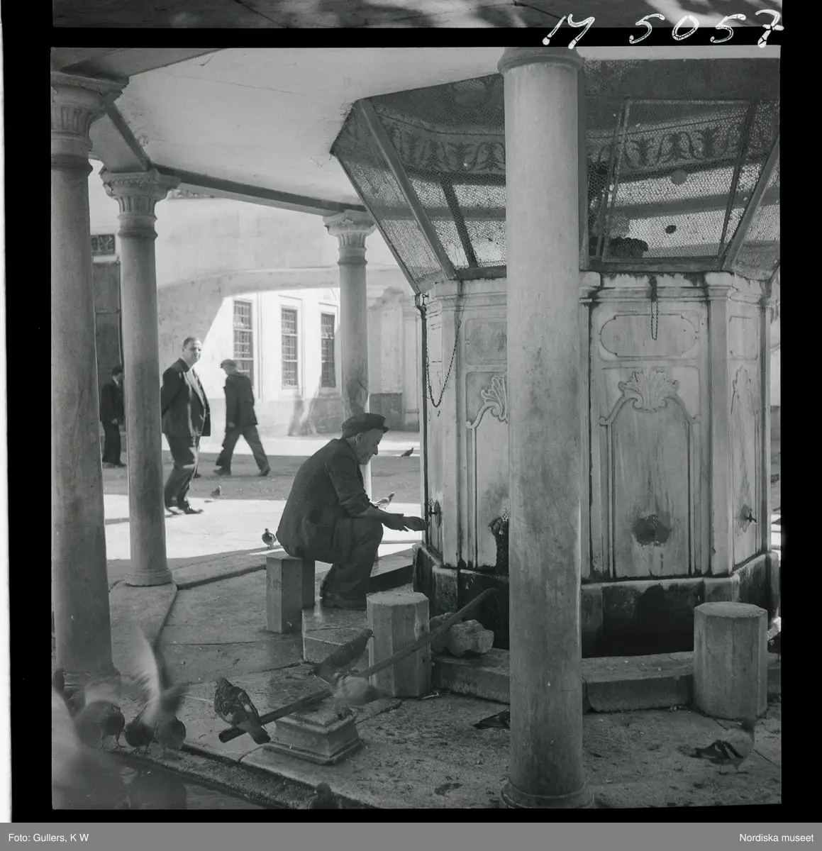 1717/K Istanbul allmänt. En man sittandes vid fontän för tvagning på gårdsplanen till en moské.