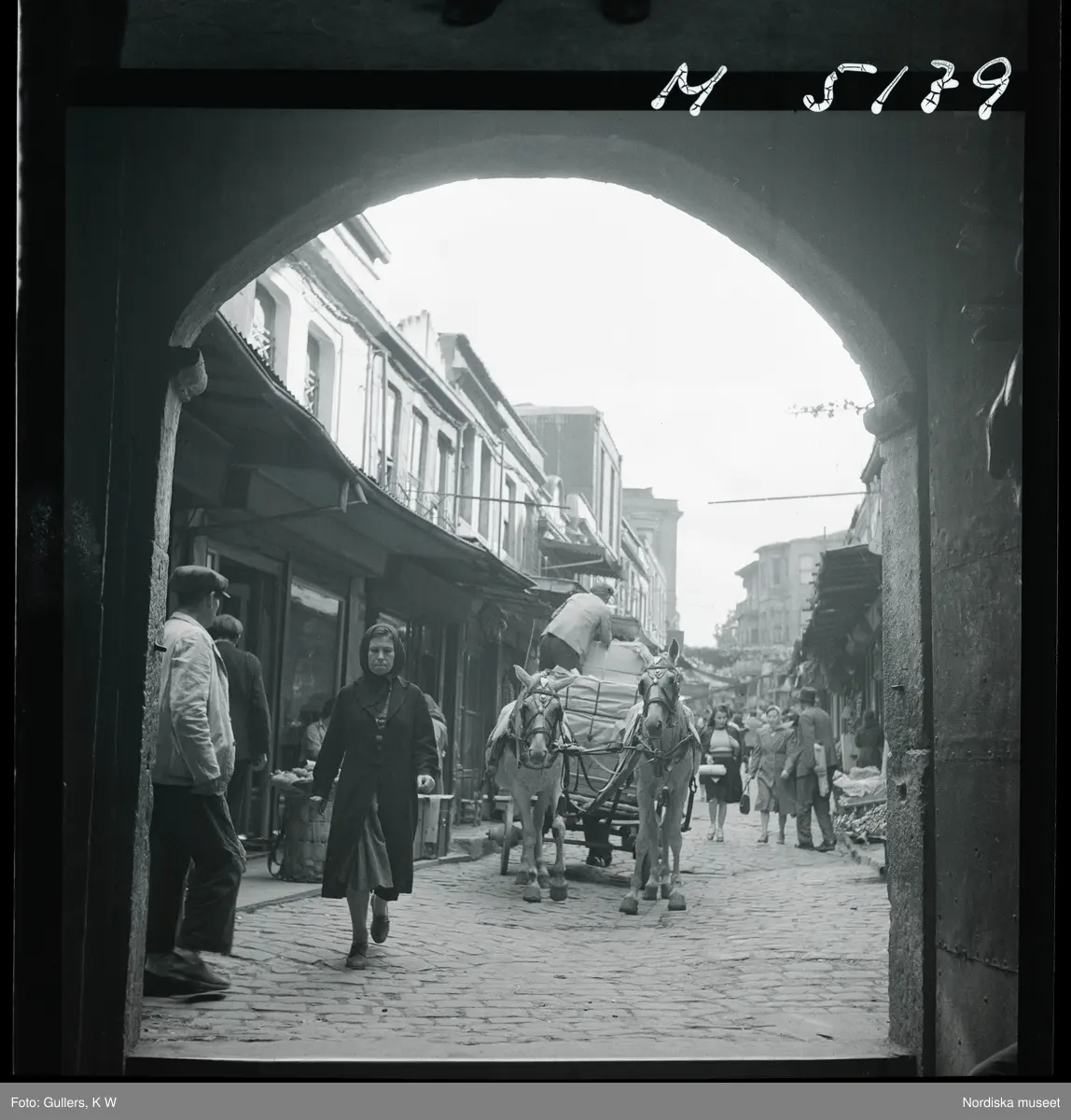 1717/K Istanbul allmänt. Gatuliv. Transport av varor med hästar och vagn.