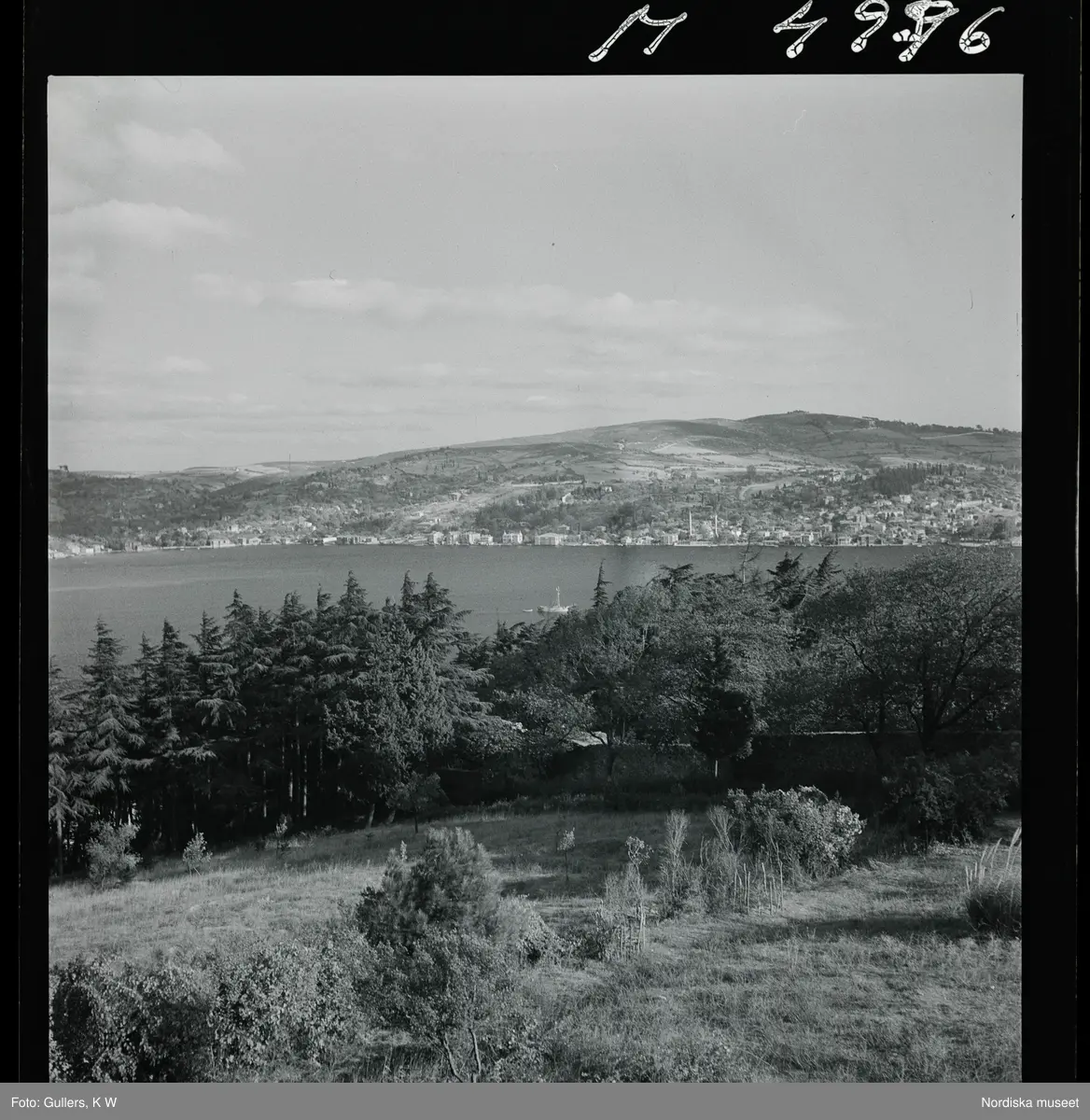 1717/K Istanbul allmänt. Vy över vatten och kulligt landskap.