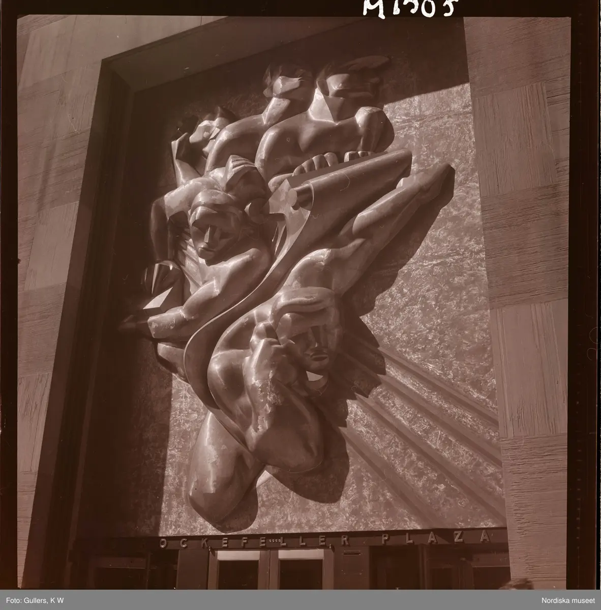 1690 New York, allmänt. Utsmyckning ovanför ingång till Rockefeller Plaza.