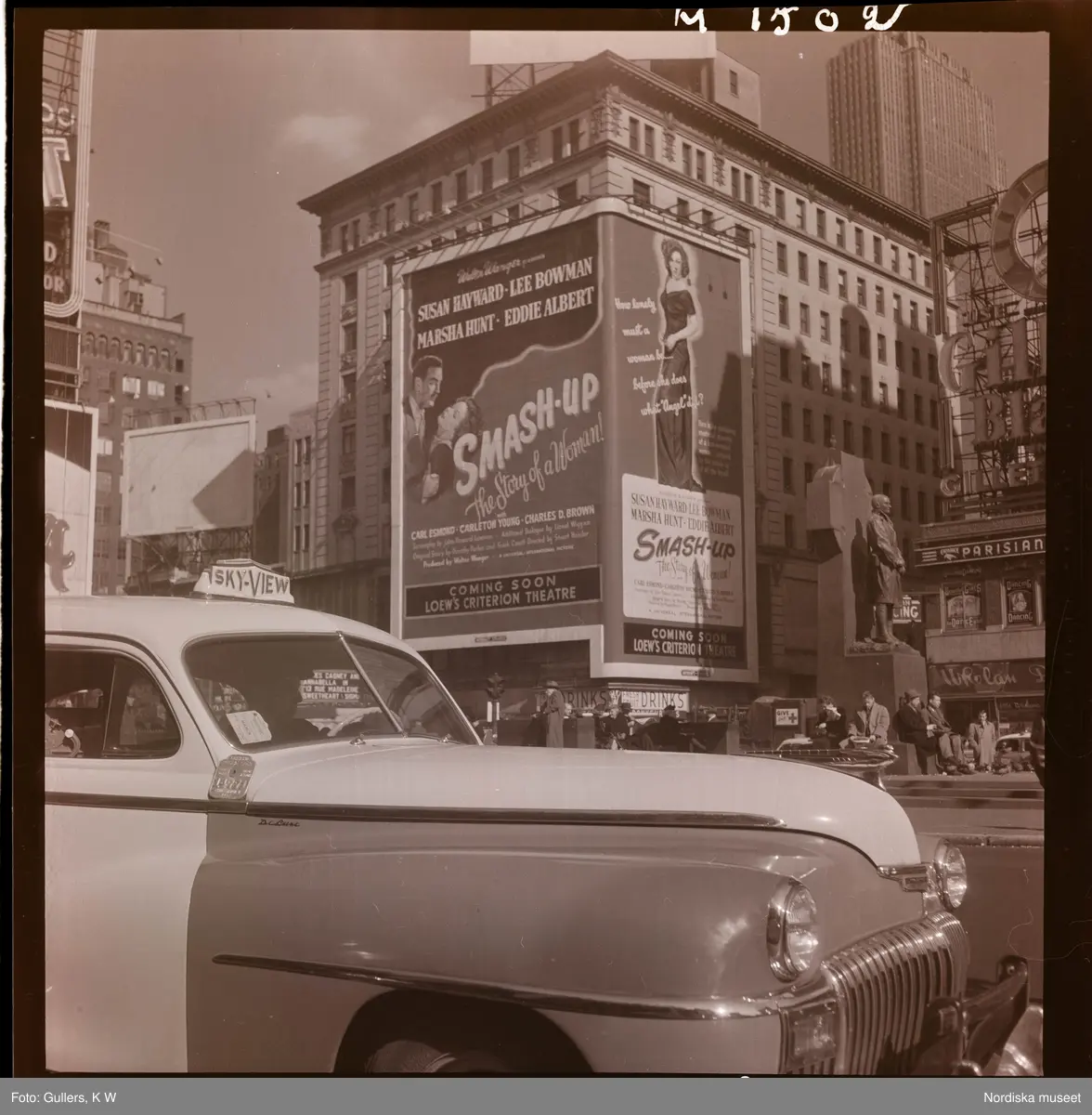 1690 New York, allmänt. Gatubild. Billboard gör reklam för filmen Smash-up.