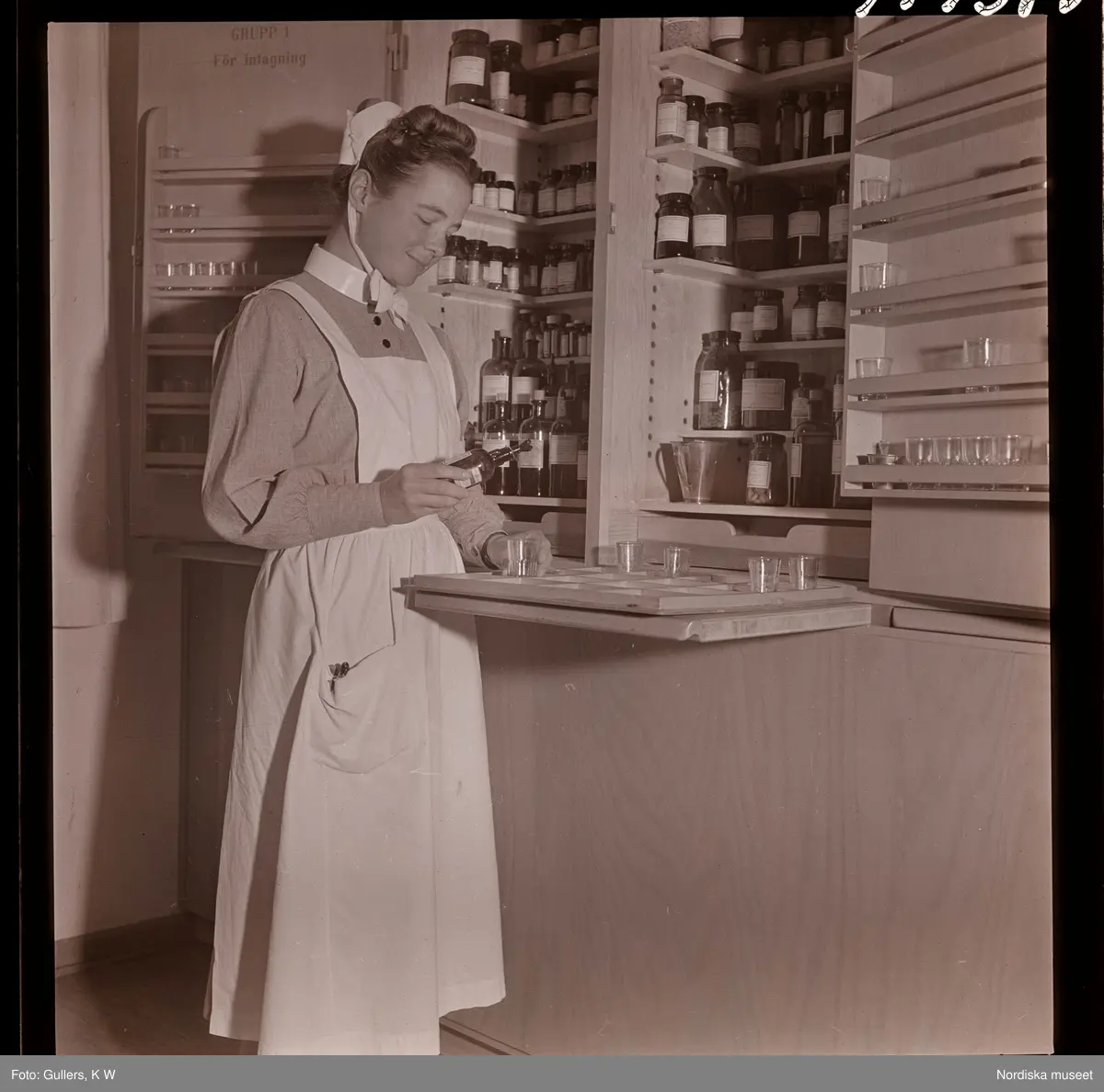 1714 En sjuksköterskas arbetsdag på södersjukhuset. En sköterska häller upp medicin ur en liten flaska.