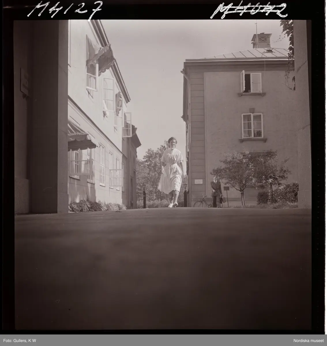 1711 En sjuksköterskas arbetsdag. En sköterska påväg in i sjukhusbyggnad.