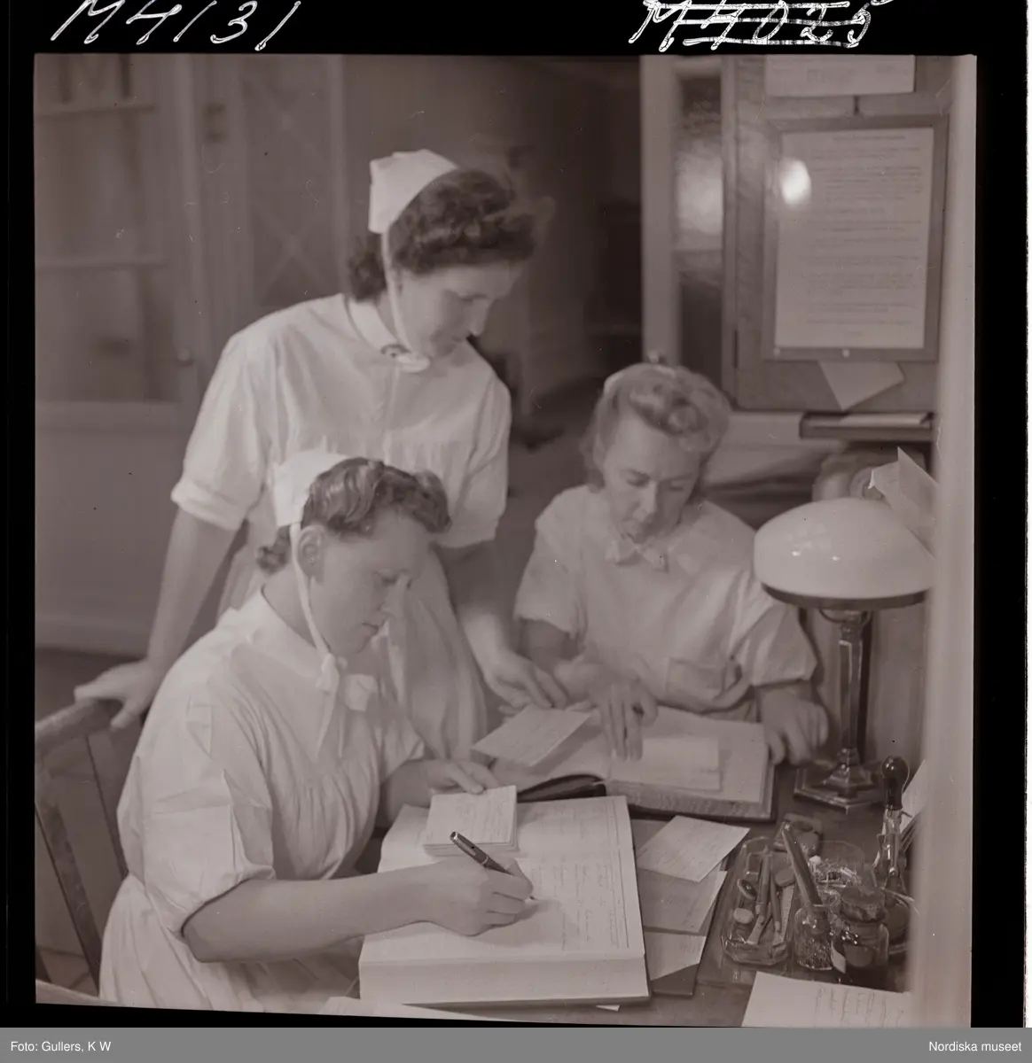 1711 En sjuksköterskas arbetsdag. Administration. Tre sköterskor för bok.