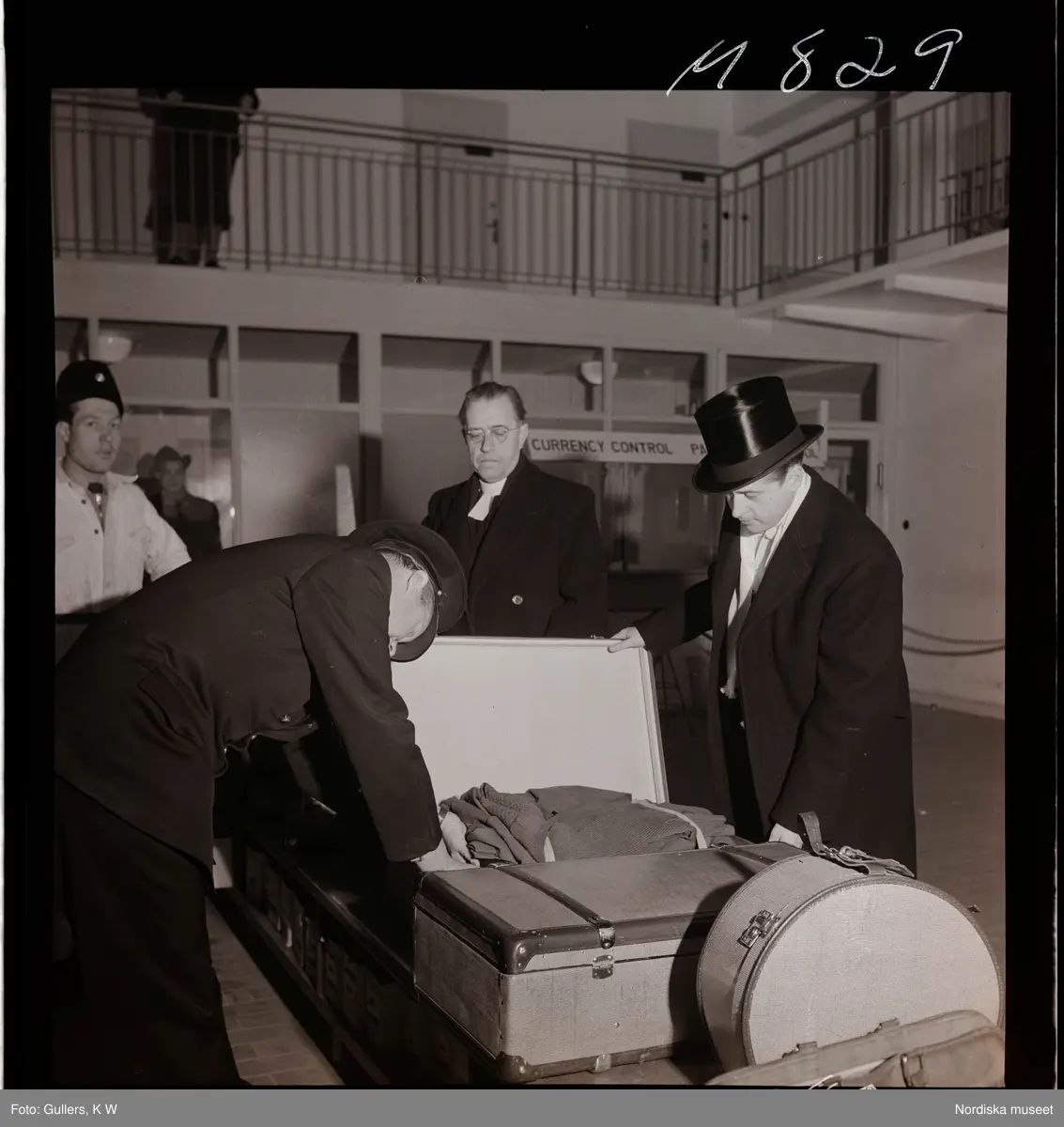 "1680 Bröllop i luften med Abas DC-4 ""Sunnan"" till Paris ". Brudgums bagage kontrolleras.