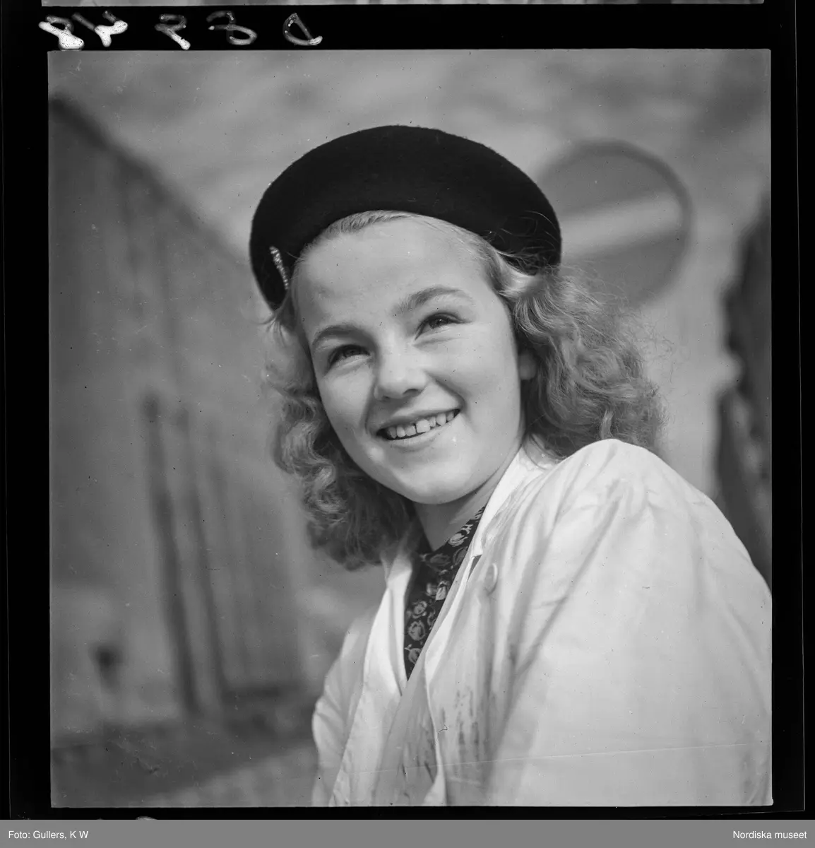 Titel:539 Söder. Porträtt av en ung kvinna i basker.