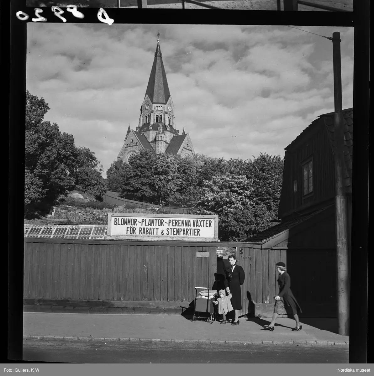 539 Söder. Skylt för handelsträdgård nedanför Sofia kyrka.