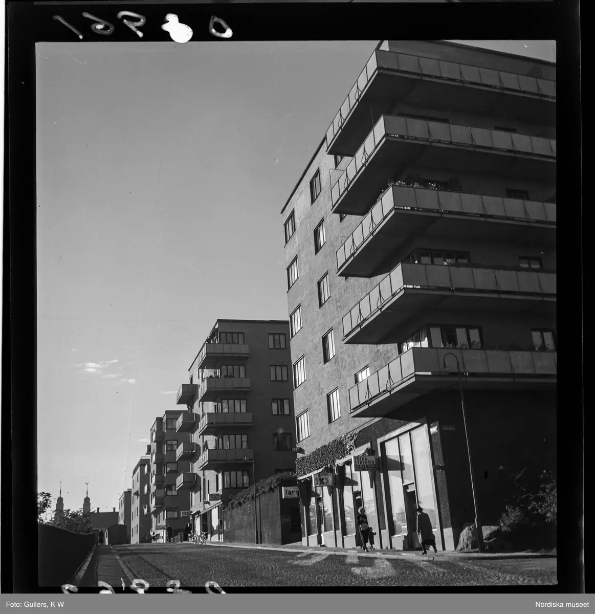 539 Söder. Balkonger på funkishus.