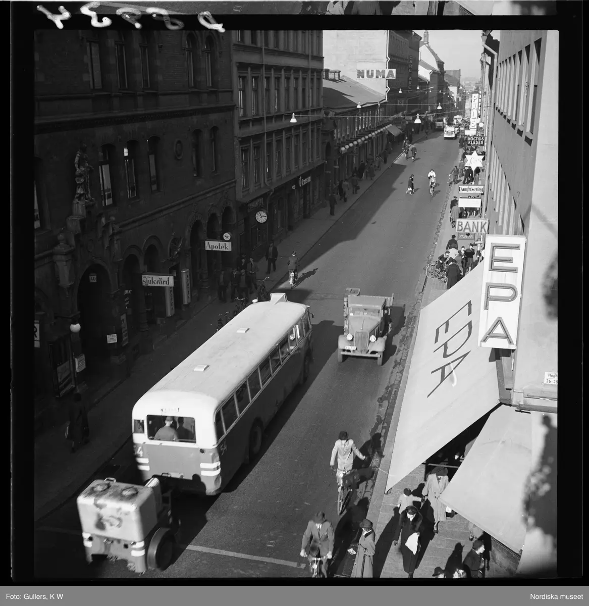 539 Söder. En grupp pojkar umgås ute på Folkungagatan. Några sitter på trottoaren, ett par har stannat till med sina cyklar.