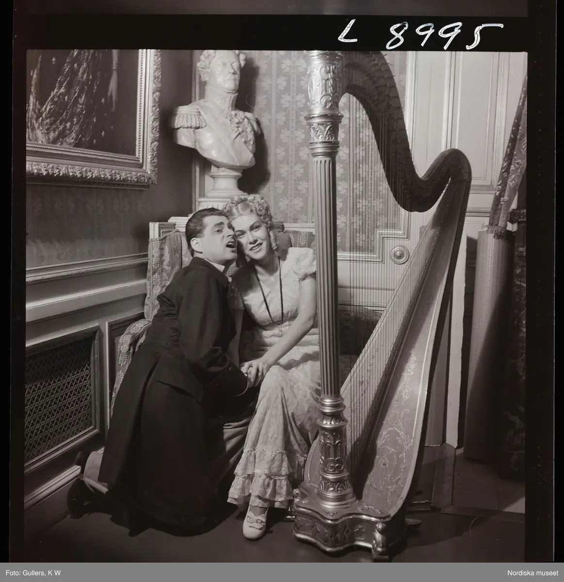 561 A Operareportage för tidningen Vi. En man och en kvinna sitter intill en harpa.