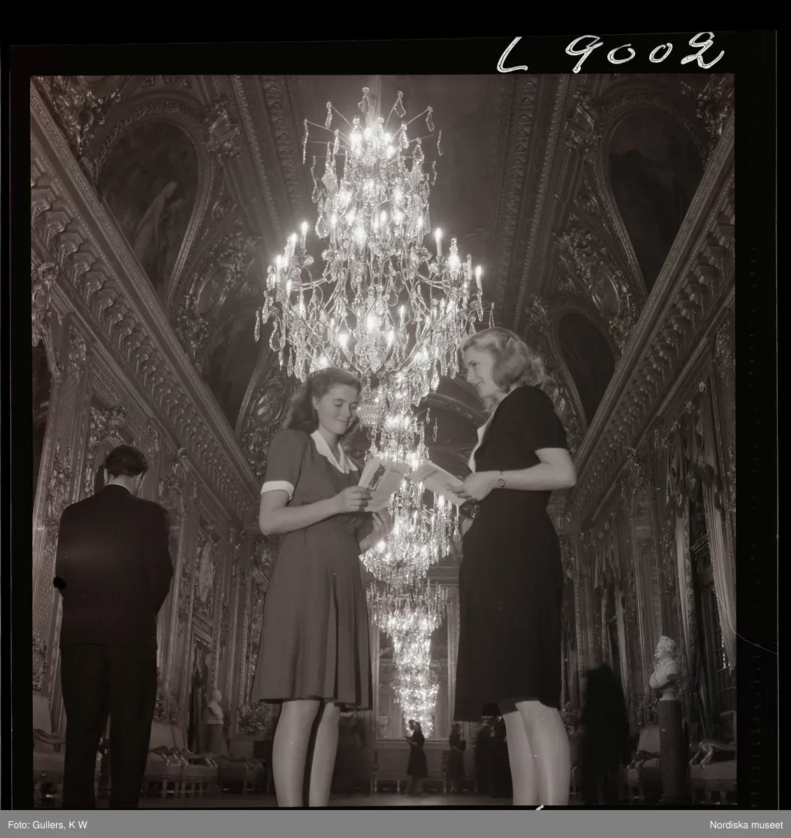 561 A Operareportage för tidningen Vi. Två unga kvinnor i foajén.