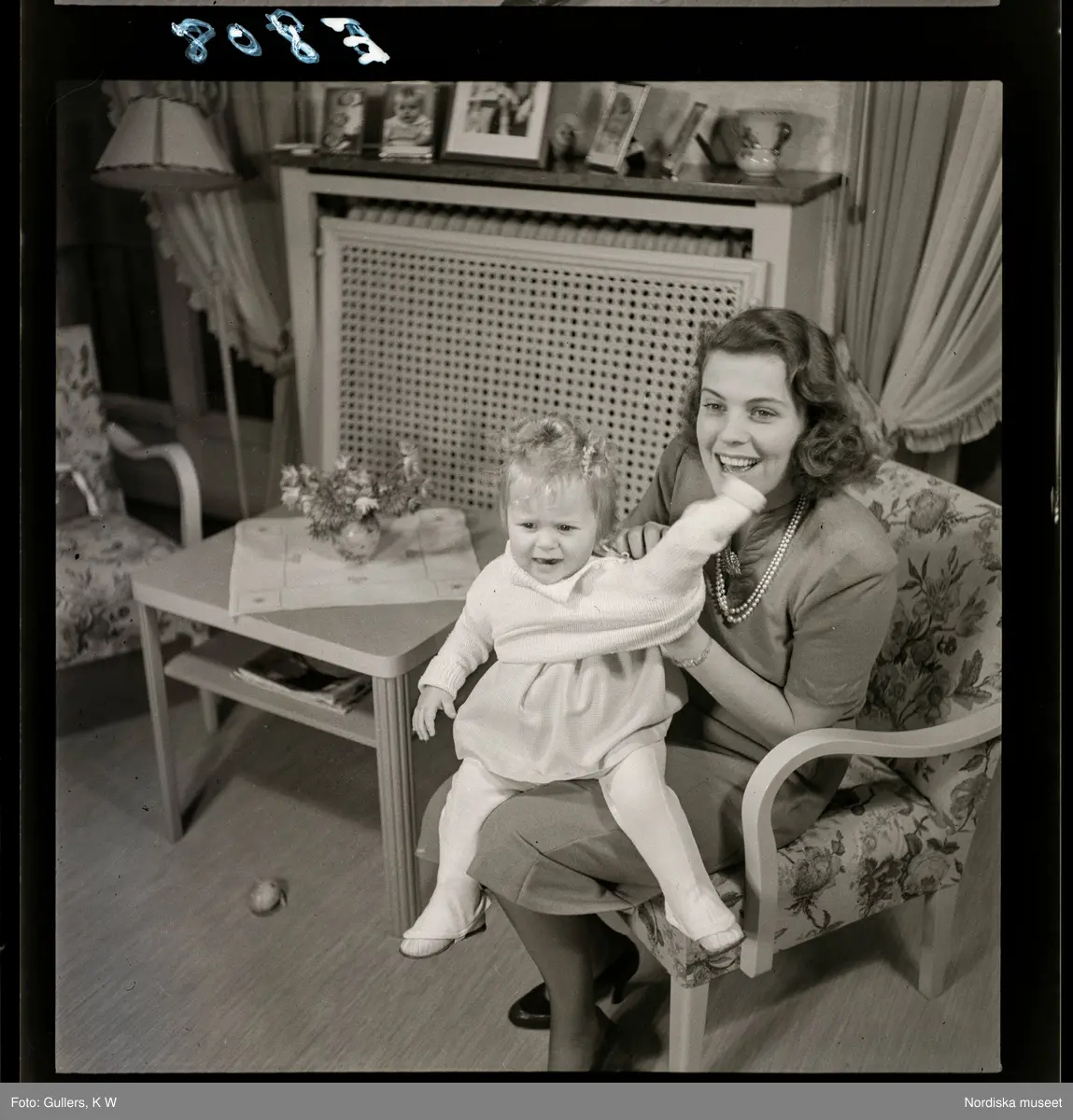 583 Sickan Carlsson för 25an Allers. Sickan Carlsson sitter i en fåtölj med en liten flicka i knät.