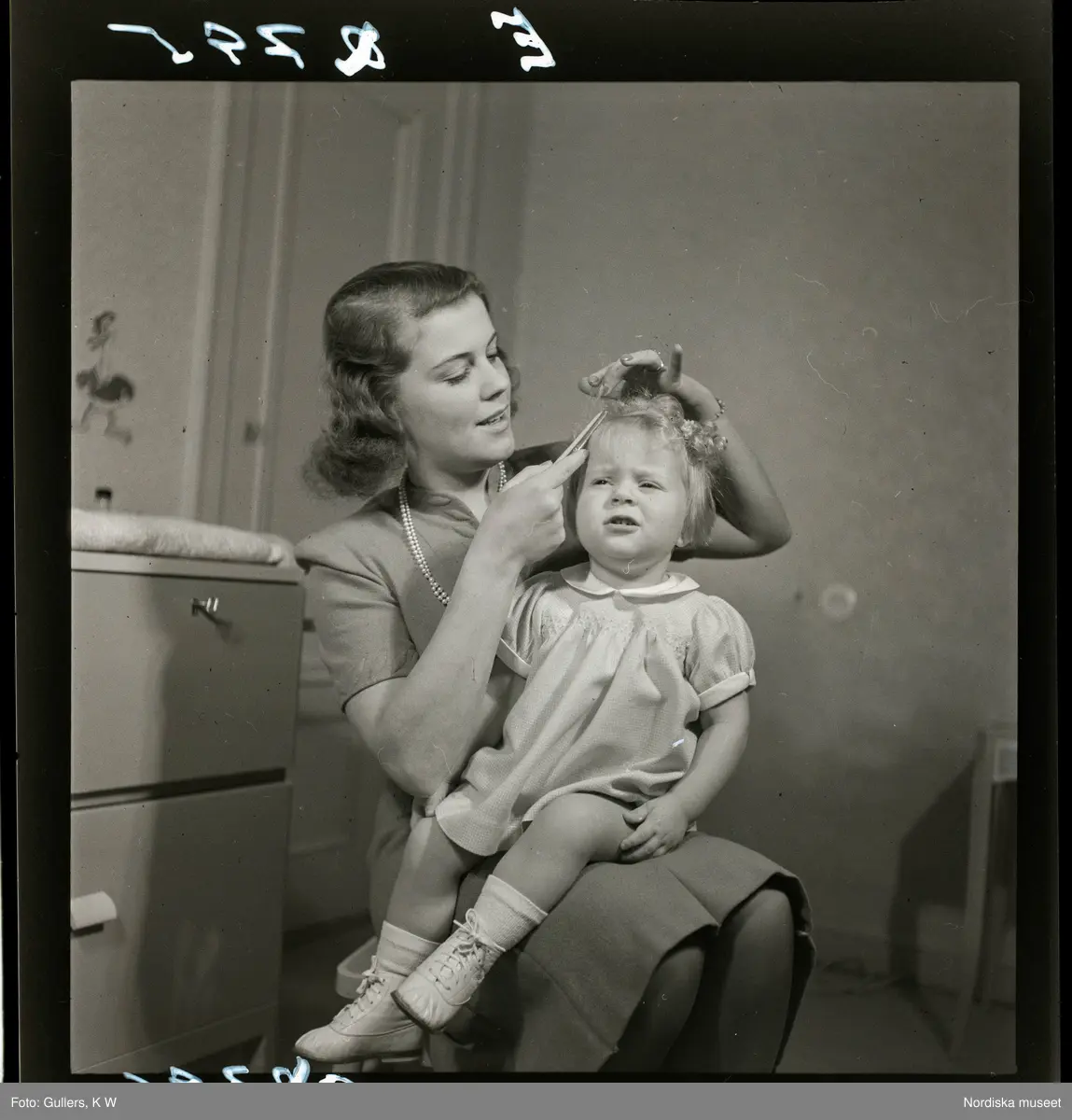 583 Sickan Carlsson för 25an Allers. Sickan Carlsson sitter och kammar en liten flicka.