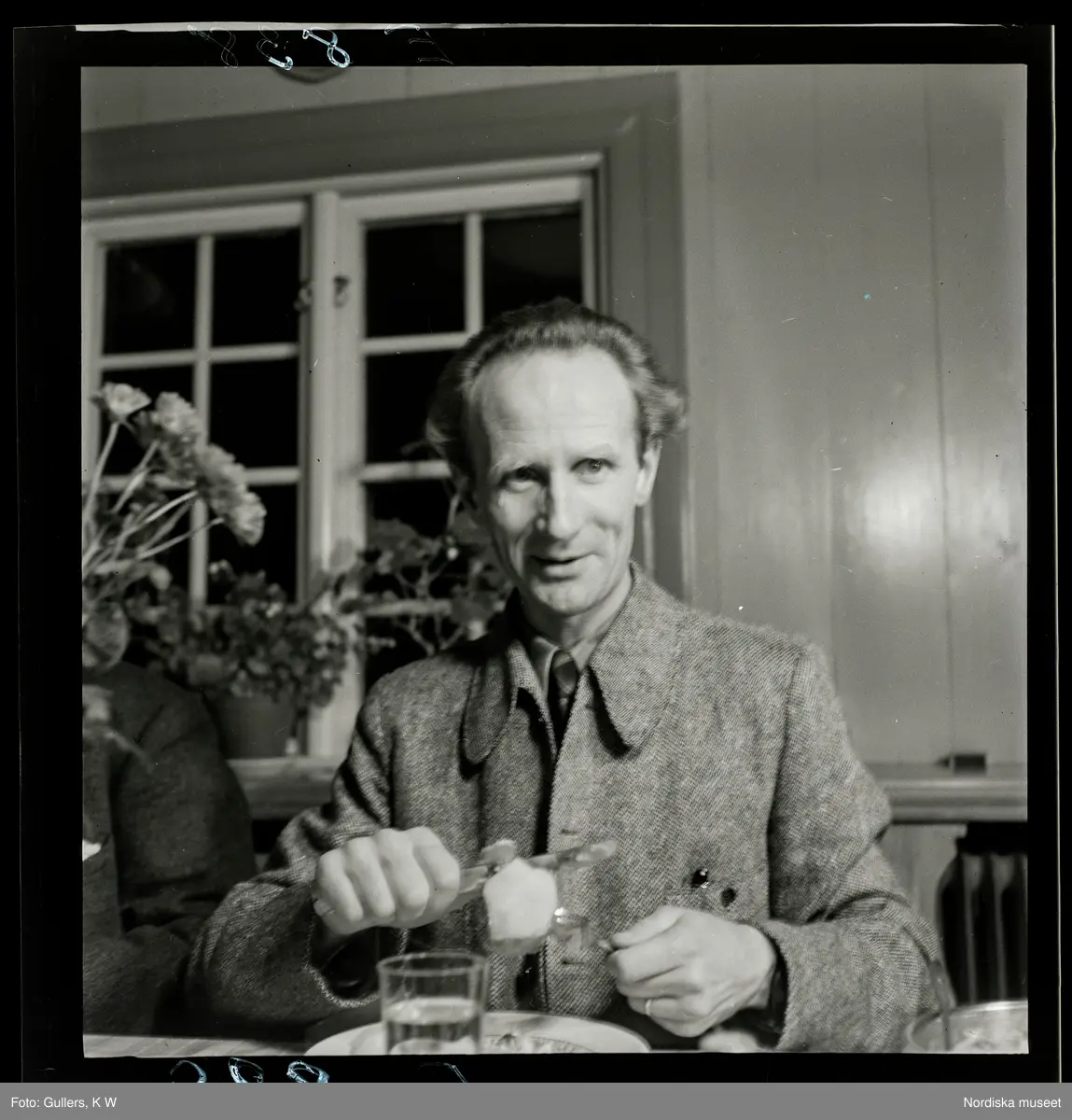 584 Brunsviks Folkhögskola. En man sitter till bords och skalar potatis.