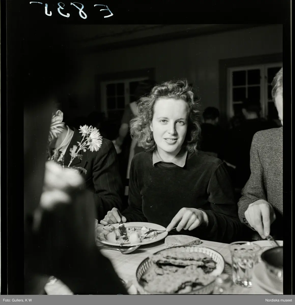 584 Brunsviks Folkhögskola. En kvinna vid matbordet.