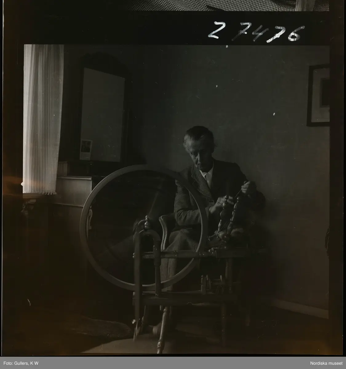 2363 Nilsson Fröken, Majvägen 7, Bromma Handarbete-korgflätning-tagn. Svensk Hemslöjd; vid Spinnrocken Jan. 57