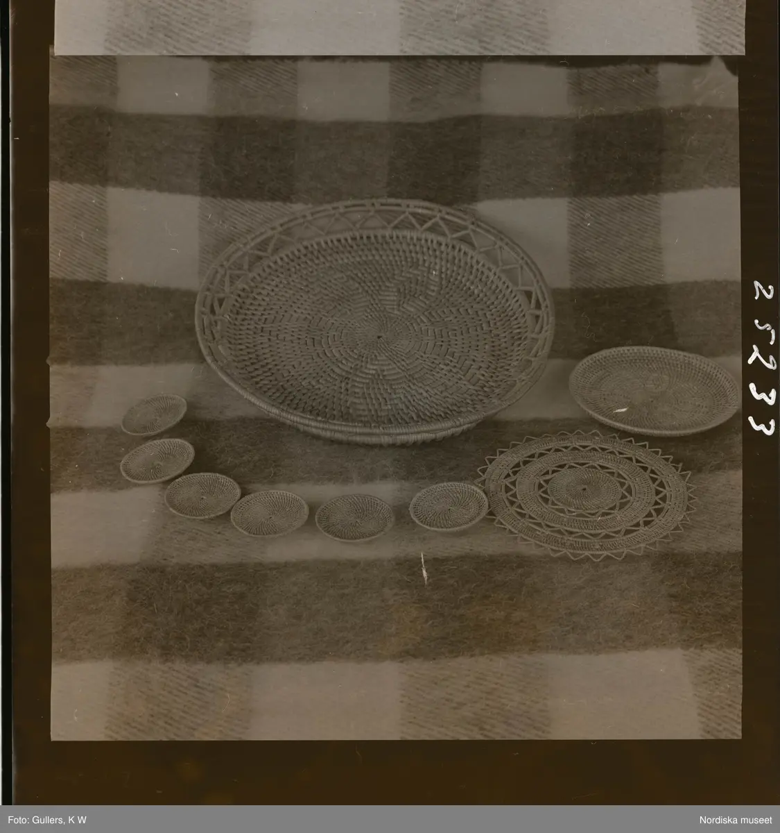 2367 Nilsson Fröken, Majvägen 7, Bromma Handarbete-korgflätning-tagn. Svensk Hemslöjd; vid Spinnrocken Jan. 57