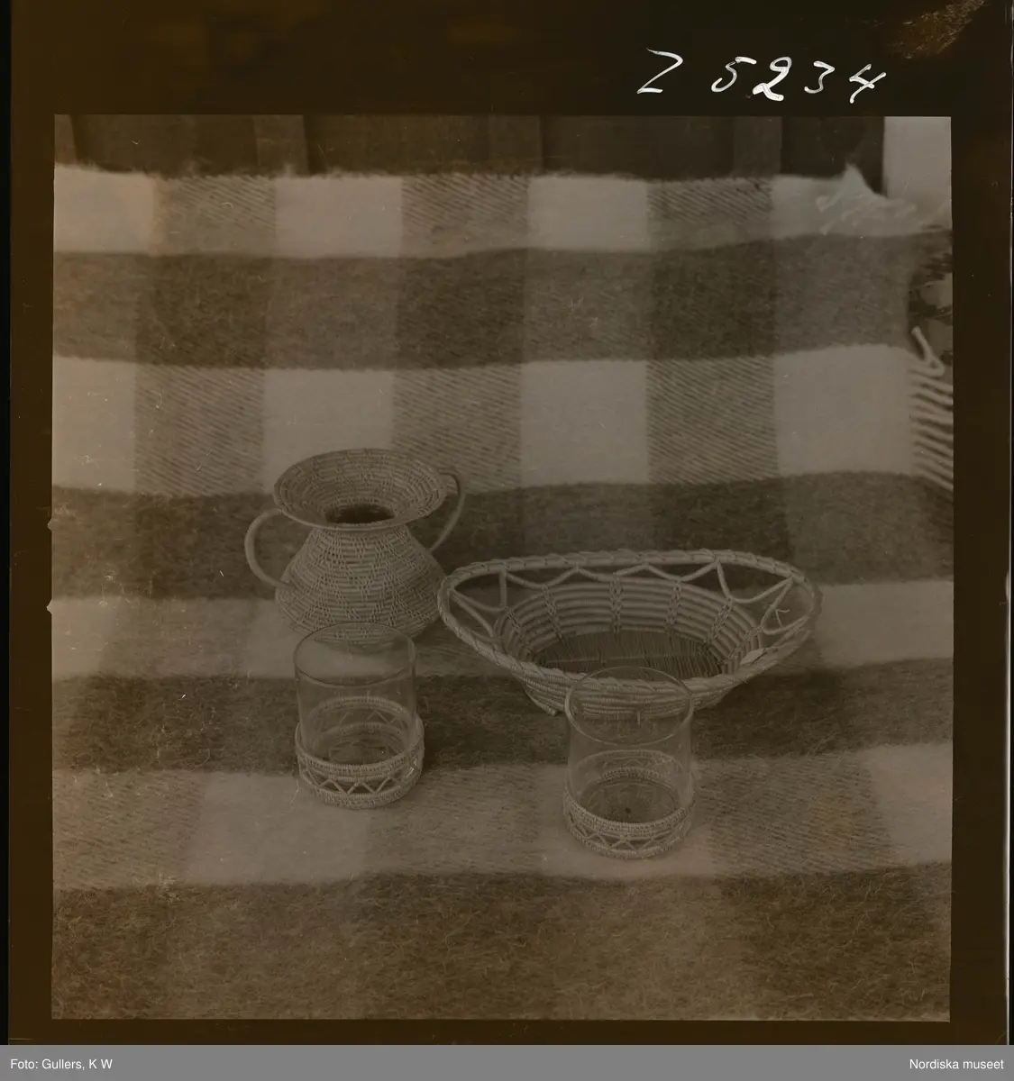 2370 Nilsson Fröken, Majvägen 7, Bromma Handarbete-korgflätning-tagn. Svensk Hemslöjd; vid Spinnrocken Jan. 57