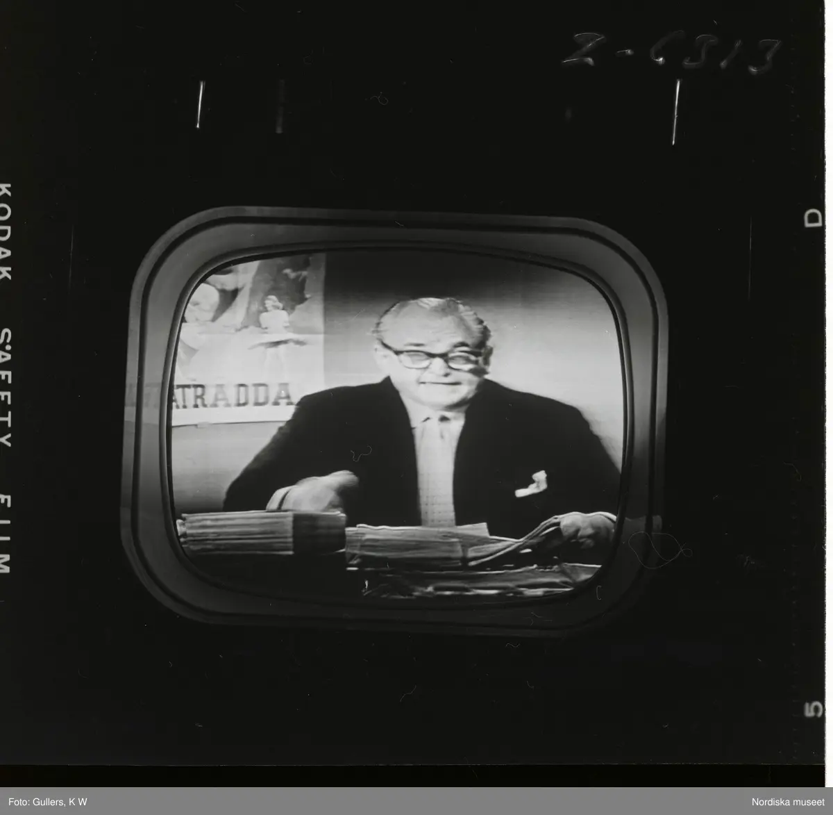 2415 Television Tak för TV; Sändning; Från utsändn. T-V-Studion + KWG på TV . Fotograf K W Gullers i TV-studio vid inspelning av fotografi-kurs. "Gullers fotokurs"