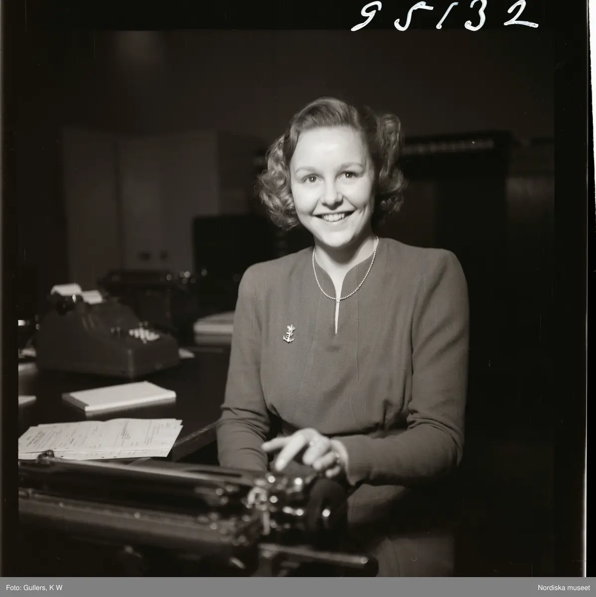 607 G, Åtvidabergs Industrier kontorsgymnastik. Porträtt av kvinna som arbetar vid skrivmaskin.