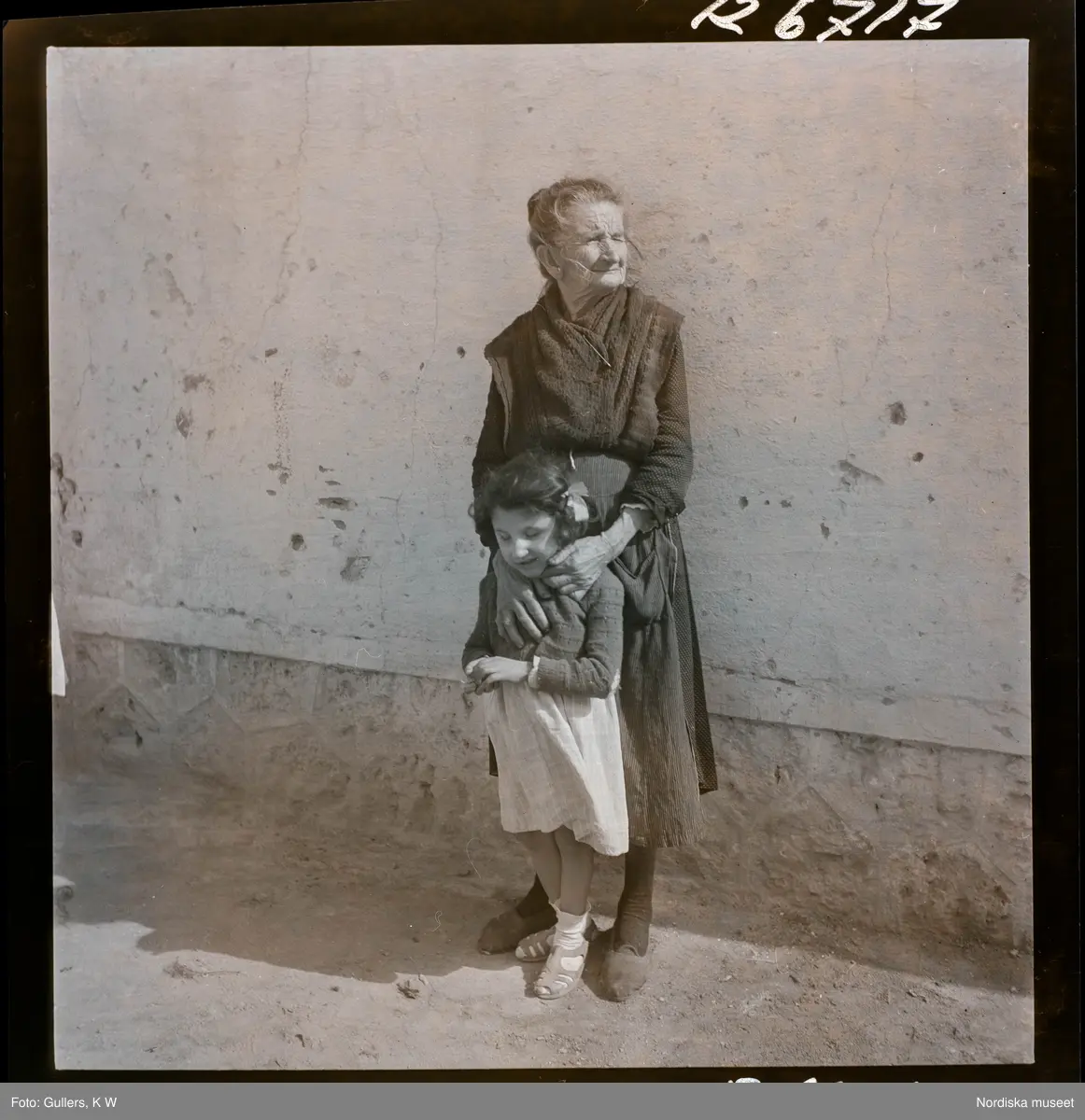568 F. Stieg Trenter, Torremolinos. En äldre kvinna och en flicka vid en husvägg.