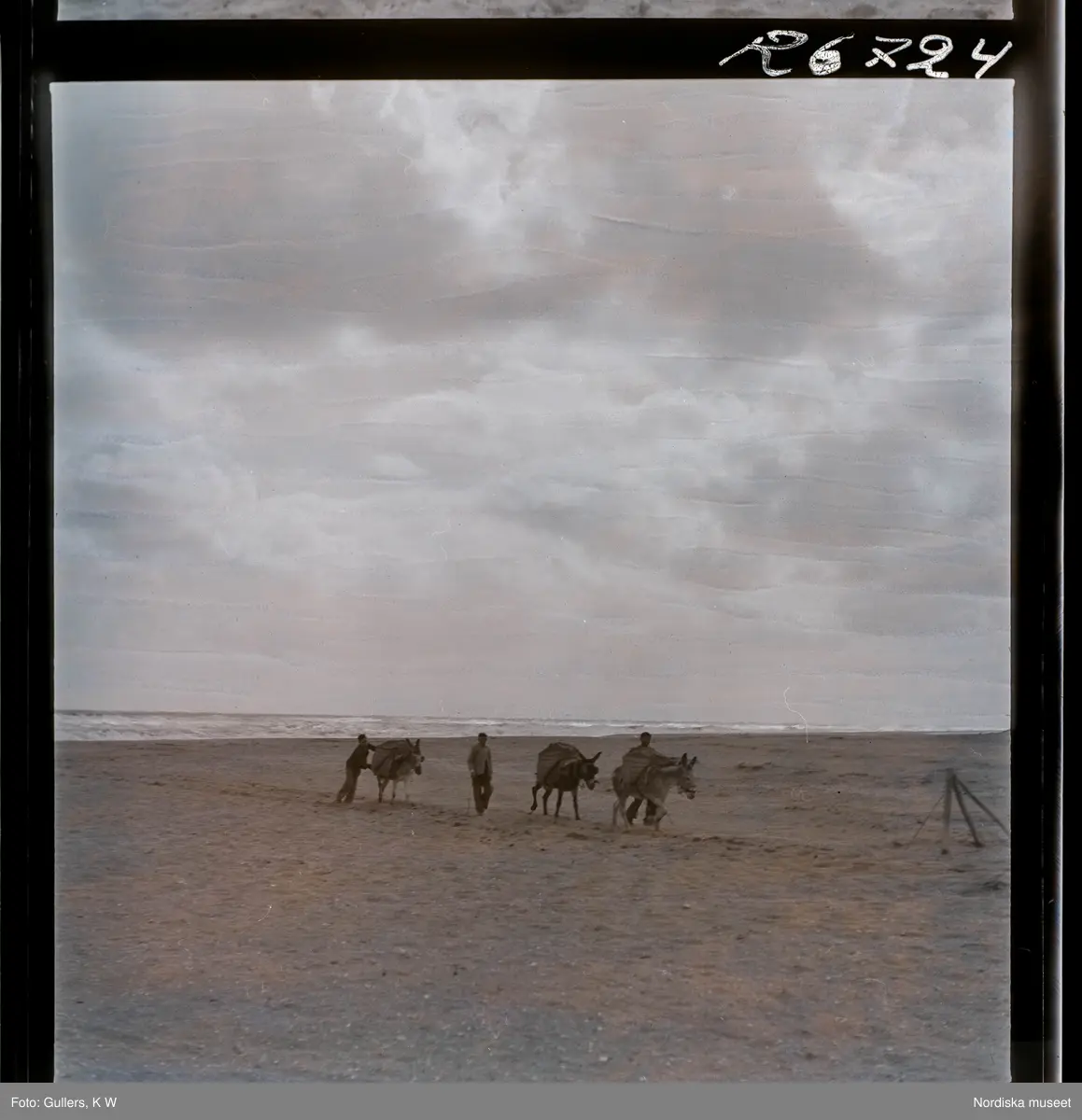 568 F. Stieg Trenter, Torremolinos. Män med åsnor på stranden.
