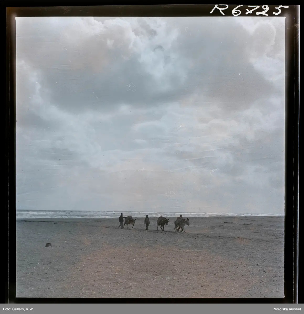 568 F. Stieg Trenter, Torremolinos. Män med åsnor på stranden.