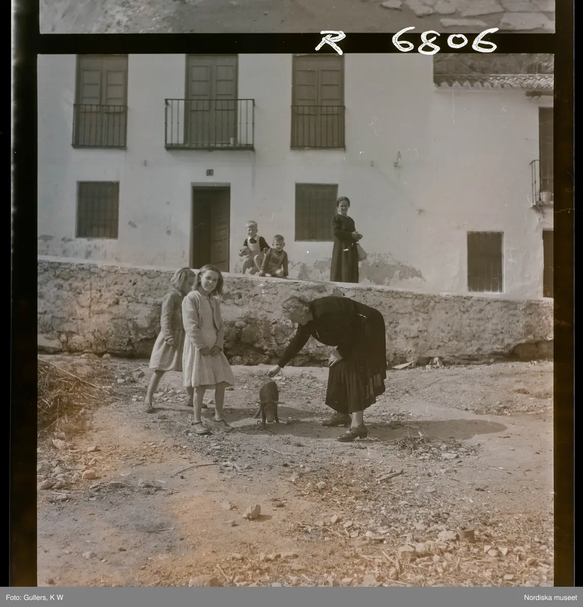 568 F. Stieg Trenter, Torremolinos. Kvinnor, barn och en liten gris i byn.