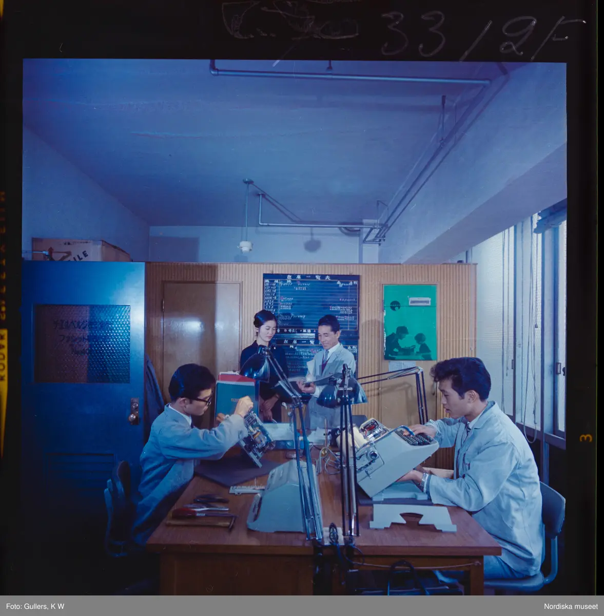 Titel: 585/8 Facit Tokyo Daberg. Arbetare sätter ihop skrivmaskiner på ett arbetsrum.