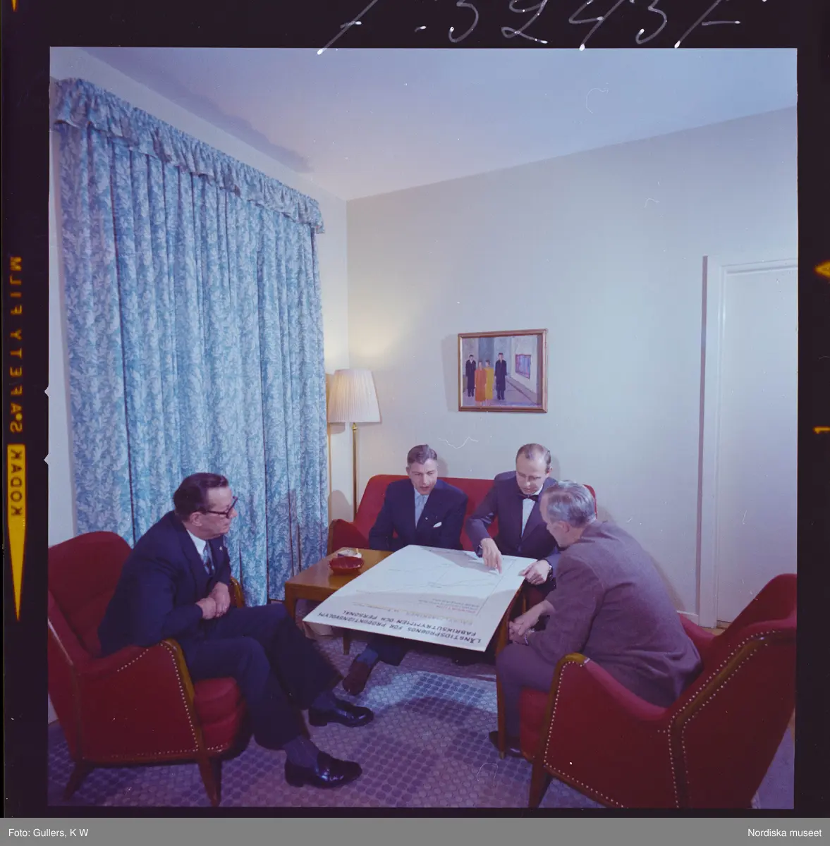 585/8 Facit Tokyo Daberg. En grupp män studerar ett stort ark med grafer.