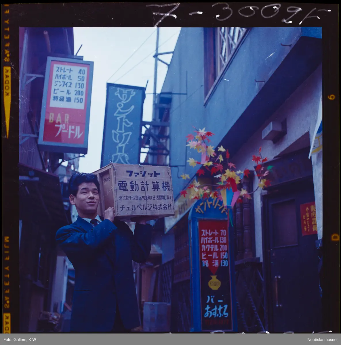 585/8 Facit Tokyo Daberg. En man bär en låda på axeln.