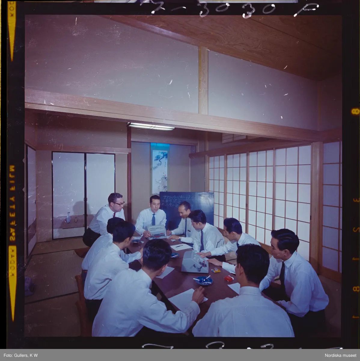 Titel: 585/8 Facit Tokyo Daberg. En grupp män har möte i ett traditionellt japanskt rum.