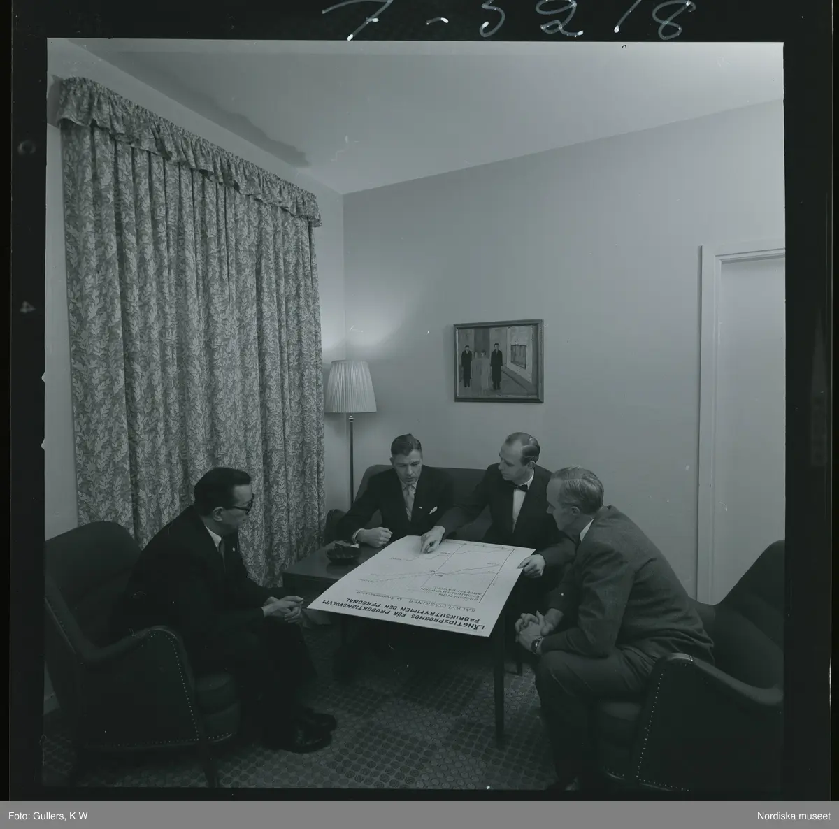 585/8 Facit Tokyo Daberg. En grupp män studerar ett stort ark med grafer.