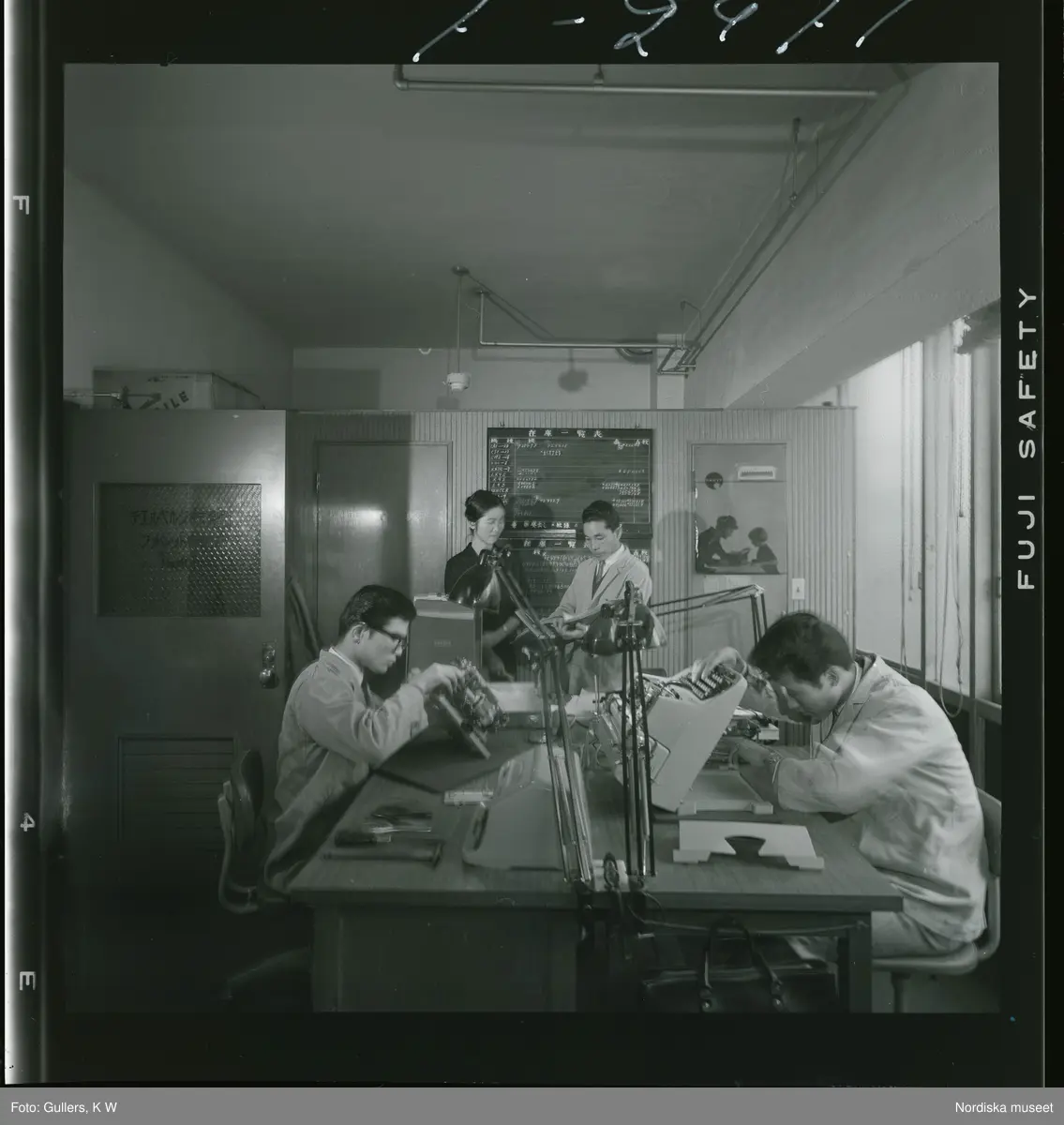 585/8 Facit Tokyo Daberg. Arbetare sätter ihop skrivmaskiner på ett arbetsrum.