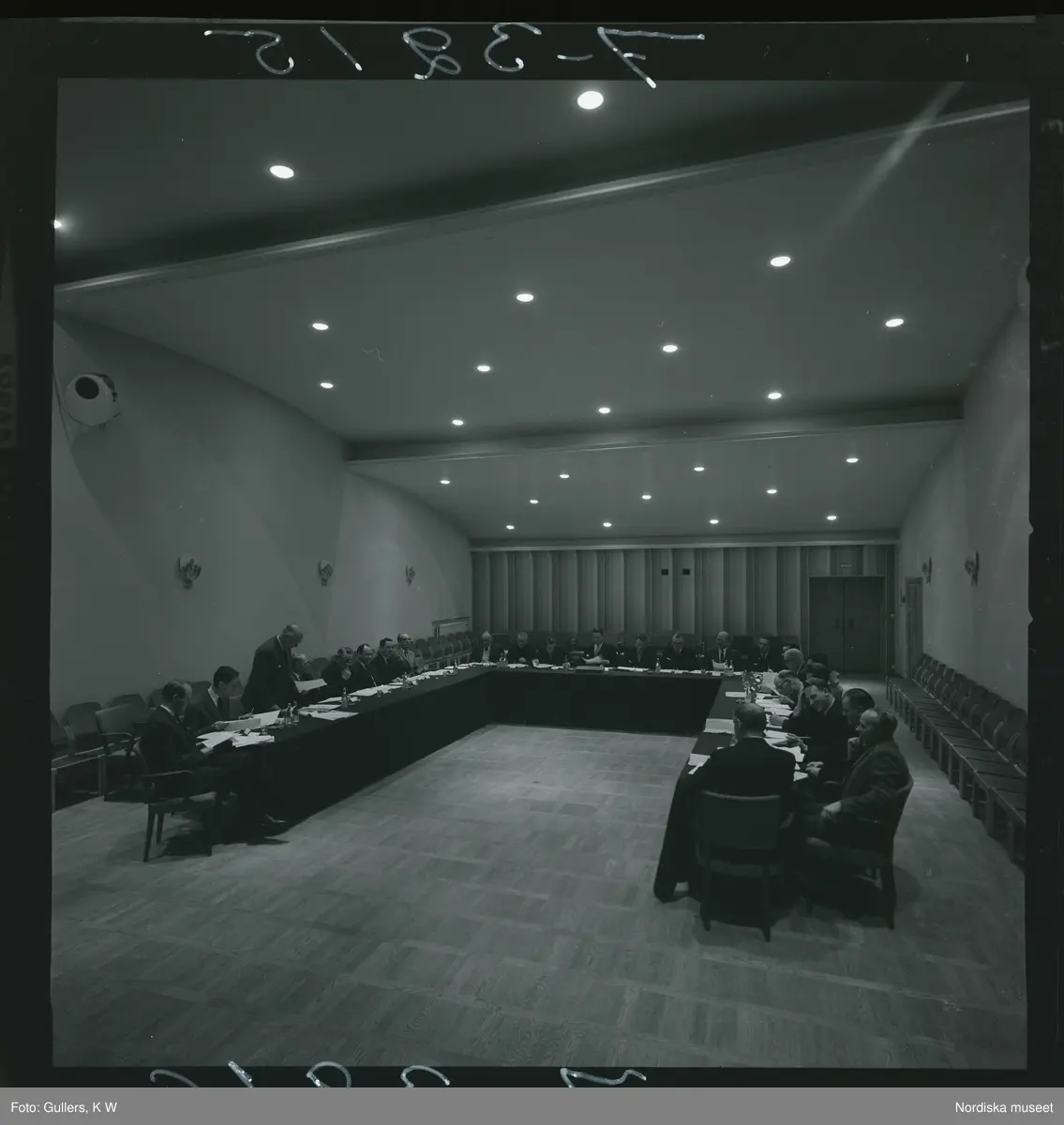 Titel: 585/8 Facit Tokyo Daberg. Sammanträde vid ett långt bord i U-formation.