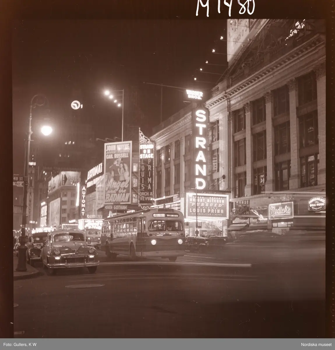 1690 New York, allmänt. Neonljus utanför biograf Strand.