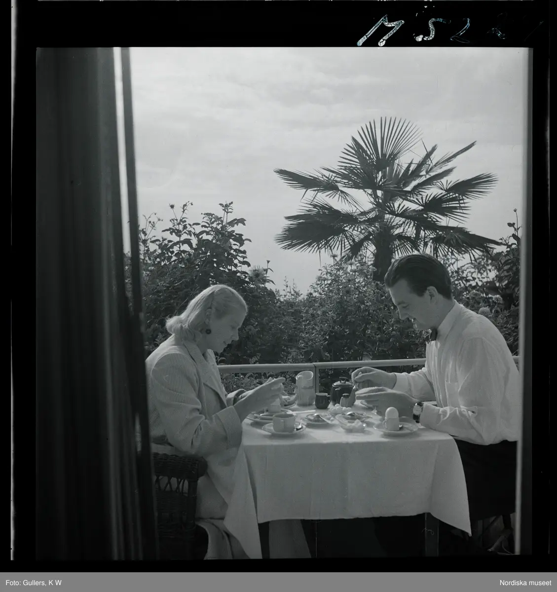 1717/L Istanbul allmänt. Fotograf K W Gullers äter frukost på en balkong med sin fru.