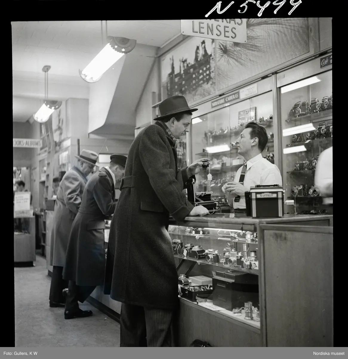 1690 New York allmänt (N.Y. Herald Tribune). K W Guller står vid disken i en foto-affär. Han håller en kameralins i handen.