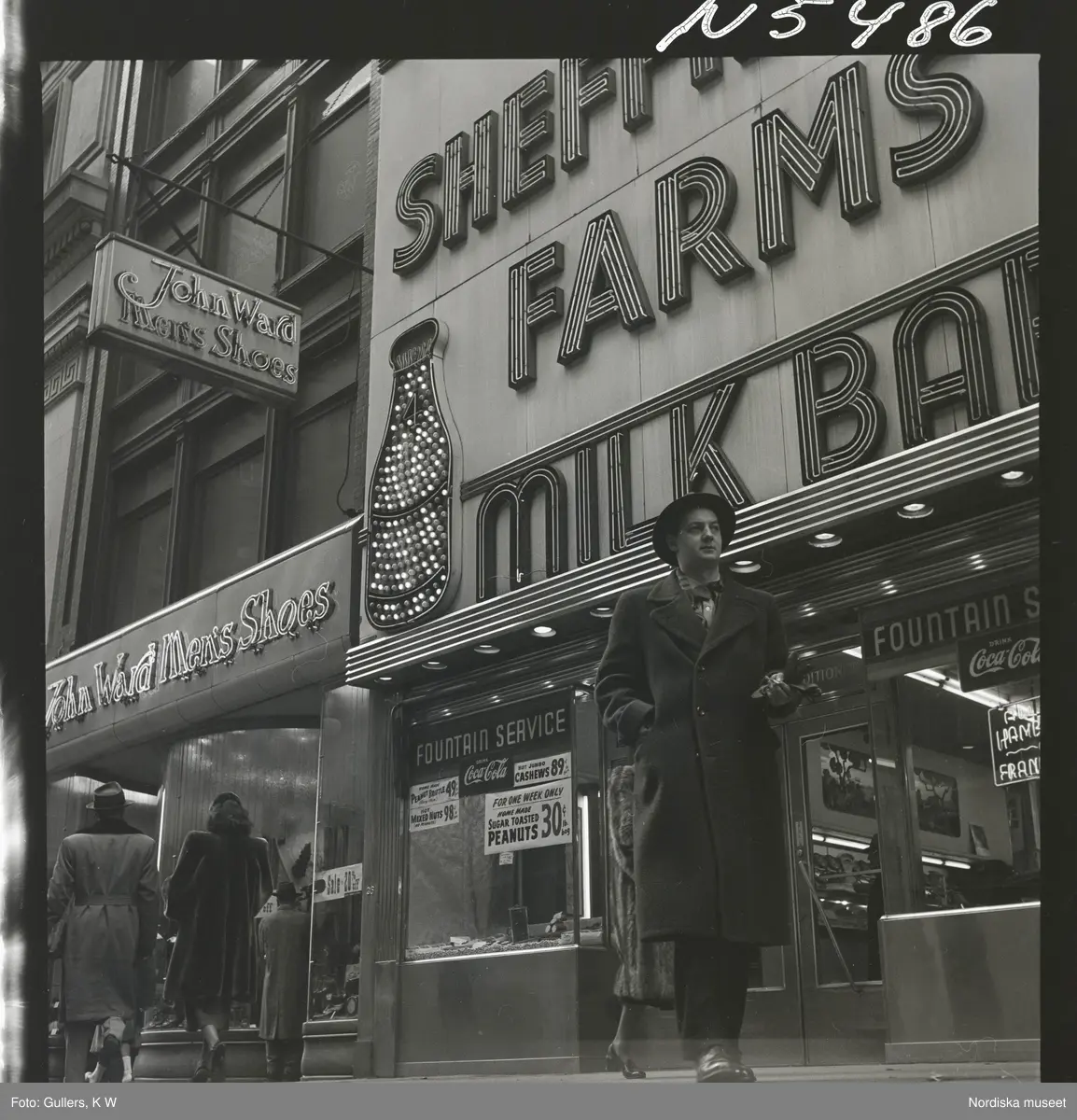 1690 New York allmänt (N.Y. Herald Tribune). K W Gullers framför Sheffield Farms Milk bar.