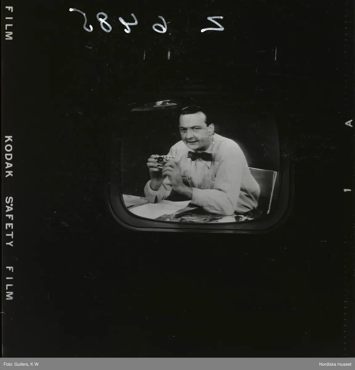 2447 Television Tak för TV; Sändning; Från utsändn. T-V-Studion + KWG på TV . Fotograf K W Gullers i TV-studio vid inspelning av fotografi-kurs. "Gullers fotokurs"