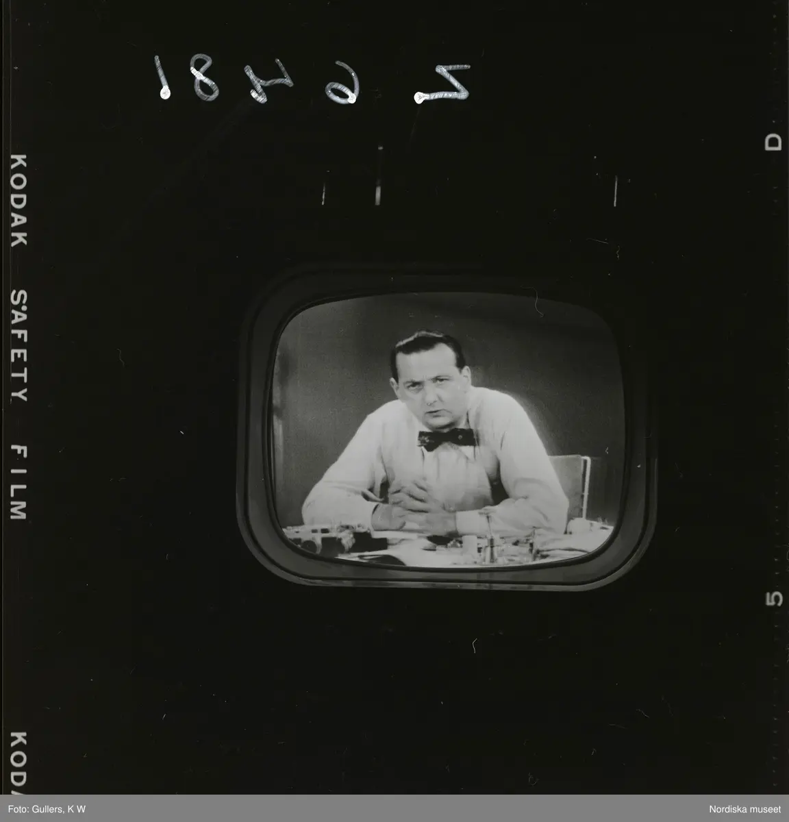 2451 Television Tak för TV; Sändning; Från utsändn. T-V-Studion + KWG på TV . Fotograf K W Gullers i TV-studio vid inspelning av fotografi-kurs. "Gullers fotokurs"