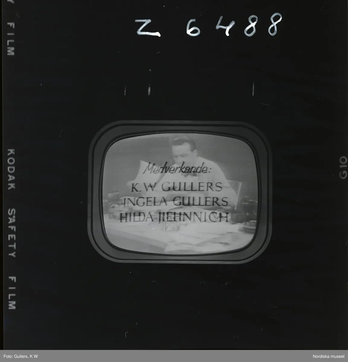 2453 Television Tak för TV; Sändning; Från utsändn. T-V-Studion + KWG på TV . Fotograf K W Gullers i TV-studio vid inspelning av fotografi-kurs. "Gullers fotokurs"