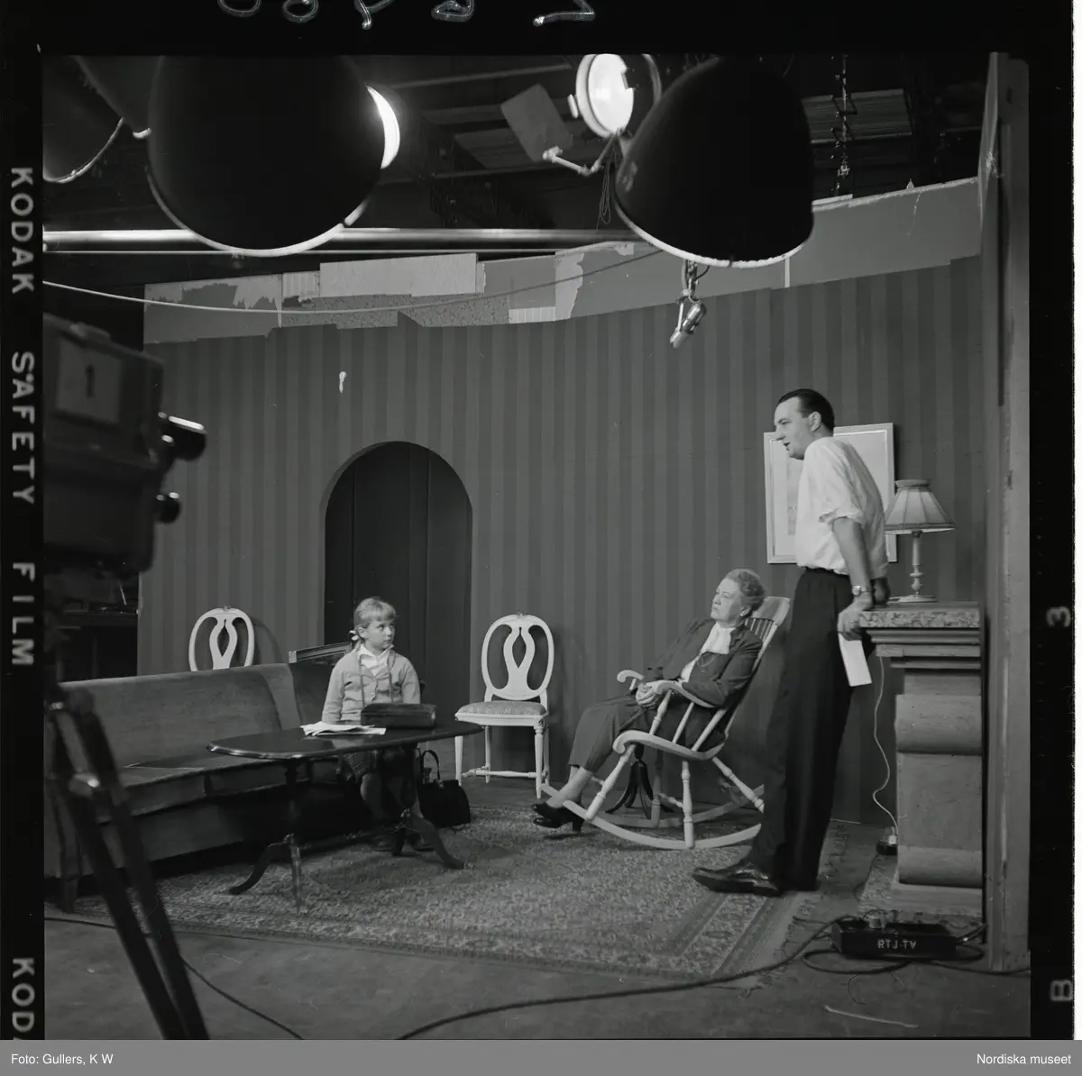 2385 Television Tak för TV; Sändning; Från utsändn. T-V-Studion + KWG på TV . Fotograf K W Gullers i TV-studio vid inspelning av fotografi-kurs. "Gullers fotokurs"