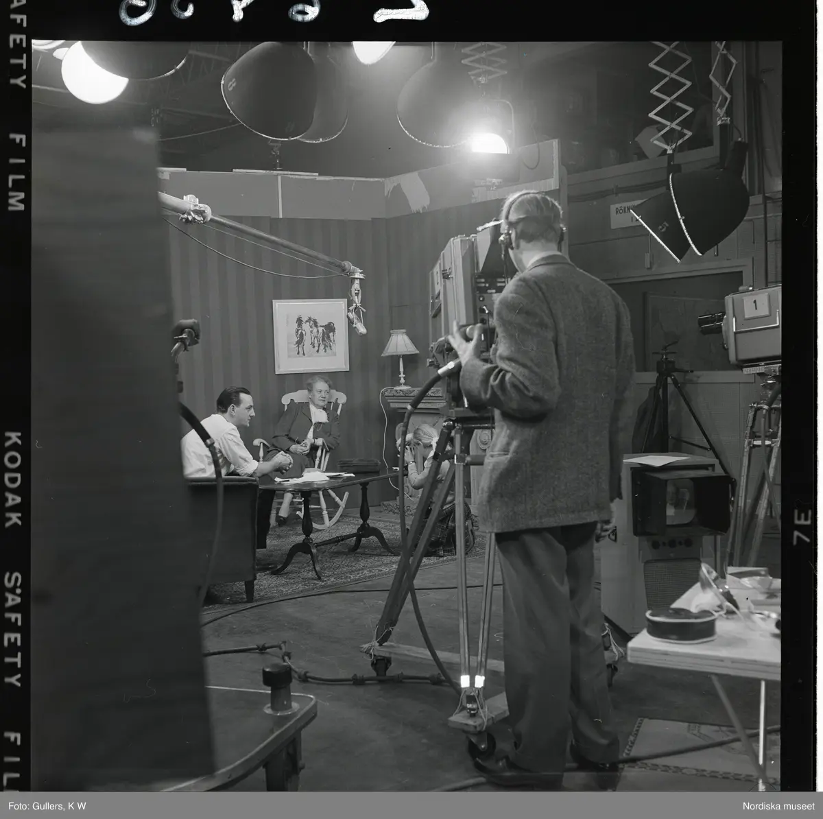 2387 Television Tak för TV; Sändning; Från utsändn. T-V-Studion + KWG på TV . Fotograf K W Gullers i TV-studio vid inspelning av fotografi-kurs. "Gullers fotokurs"