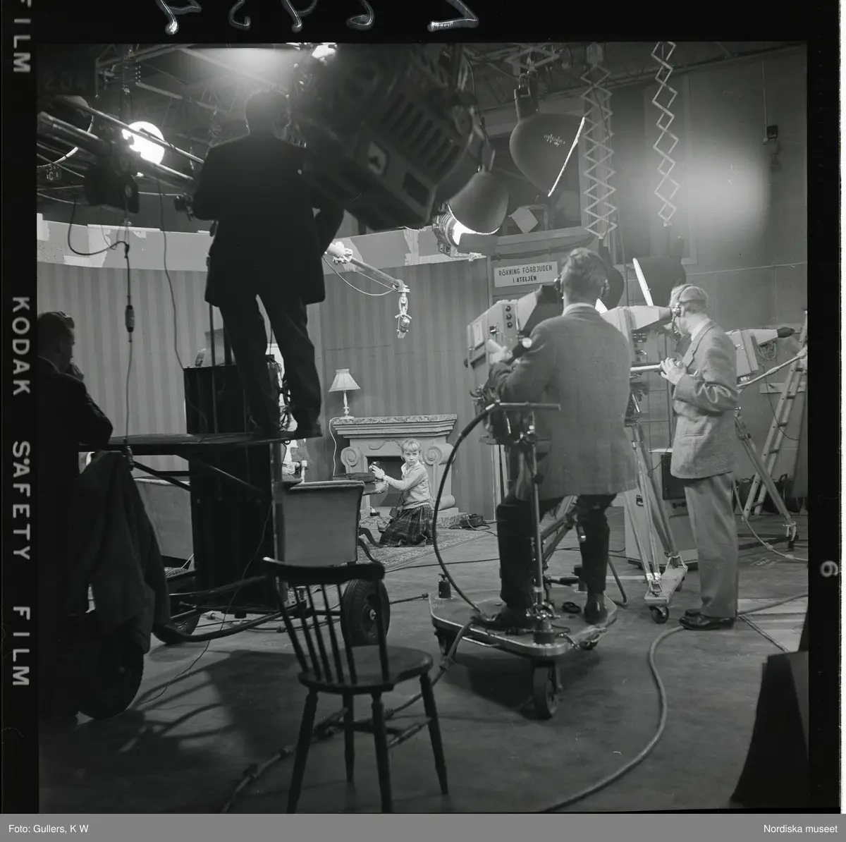 2389 Television Tak för TV; Sändning; Från utsändn. T-V-Studion + KWG på TV . Fotograf K W Gullers i TV-studio vid inspelning av fotografi-kurs. "Gullers fotokurs"